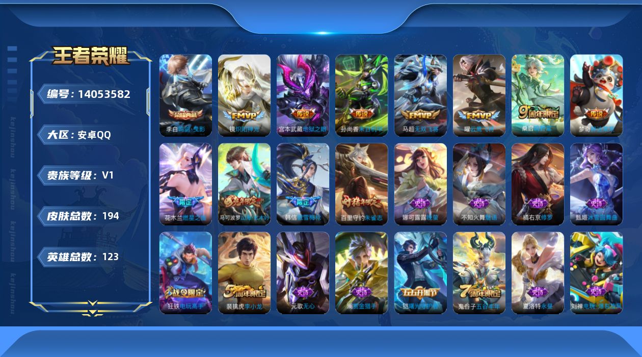 596-[14053582]可二次 万战孙尚香 贵族7 钻石3 安卓手Q403区194皮1典藏8传说0无双V1 营地ID1841737475永恒钻石III【荣耀典藏】:鸣剑·曳影【优质限定皮肤】:无双飞将【传说皮肤】:鸣野蒿,燃星之曲,炽阳神光,地狱之眼,无双飞将,云鹰飞将,末日机甲,胖达荣荣【史诗皮肤】:星界战将,舞动绿茵,曙光守护者,无限星赏官,月团寄思,地狱岩魂,梁祝,优雅恋人,顽岩魄,箭羽风息,狮舞东方,青焰无极,女仆咖啡,绅士熊喵,荣光圣徽,冰雪圆舞曲,圣诞恋歌,江河有灵,缤纷独角兽,