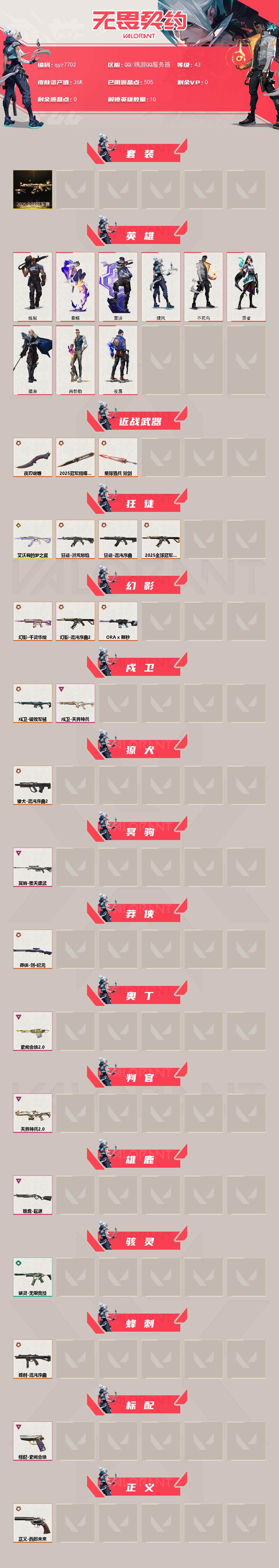 白银小号25冠军套洪荒艾沃莉混沌狂徒千灵颗秒幻影弃王大狙还有很多热门 qyz7702 近战武器皮肤: 夜刃诡镰 步枪皮肤: 戍卫-天界神兵,戍卫-破败军械,狂徒-洪荒怒焰,幻影-千灵华绽,狂徒-艾沃莉的梦之翼,狂徒-混沌序曲 佩枪皮肤: 标配-紫阙金琅,鬼魅-天界神兵,正义-西部未来 狙击枪皮肤: 冥驹-堕天遗武,莽侠-创·纪元 冲锋枪皮肤: 蜂刺-混沌序曲 霰弹枪皮肤: 雄鹿-起源,判官-天界神兵2.0 机枪皮肤: 奥丁-紫阙金琅2.0 亮点: 【qyz7702】【套装】:2025全球冠军赛套