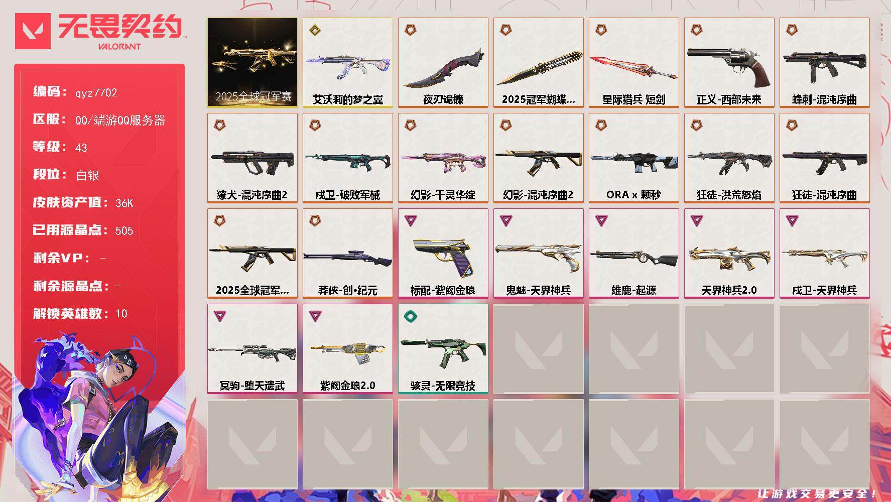 无畏契约【端游】白银小号25冠军套洪荒艾沃莉混沌狂徒