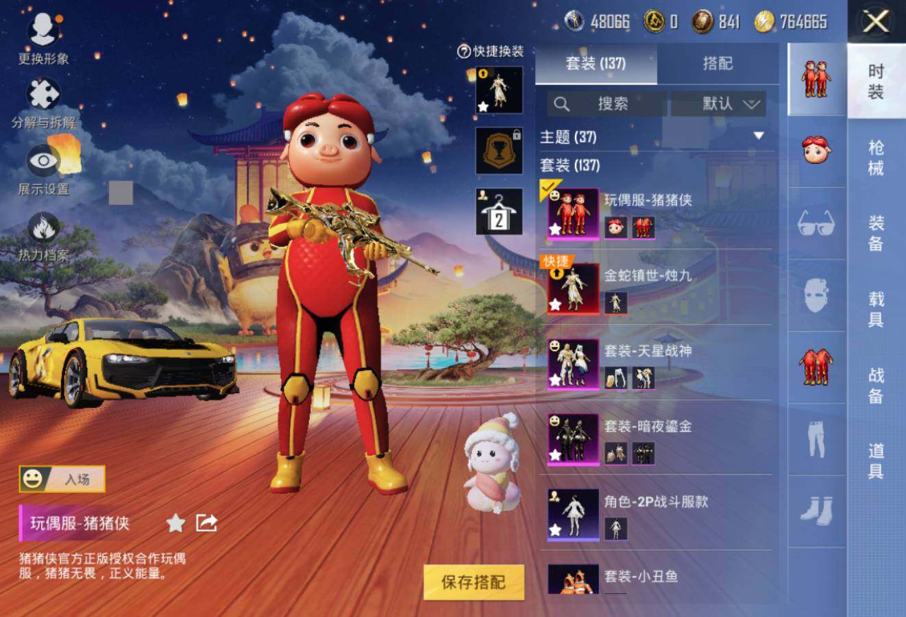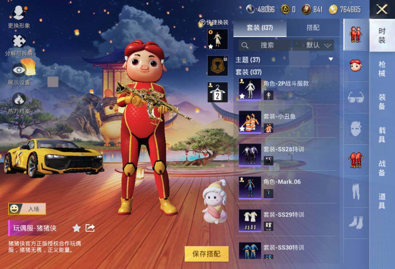 【优质套装】:粉装-暗夜鎏金,粉装-天星战神,玩偶服-猪猪侠