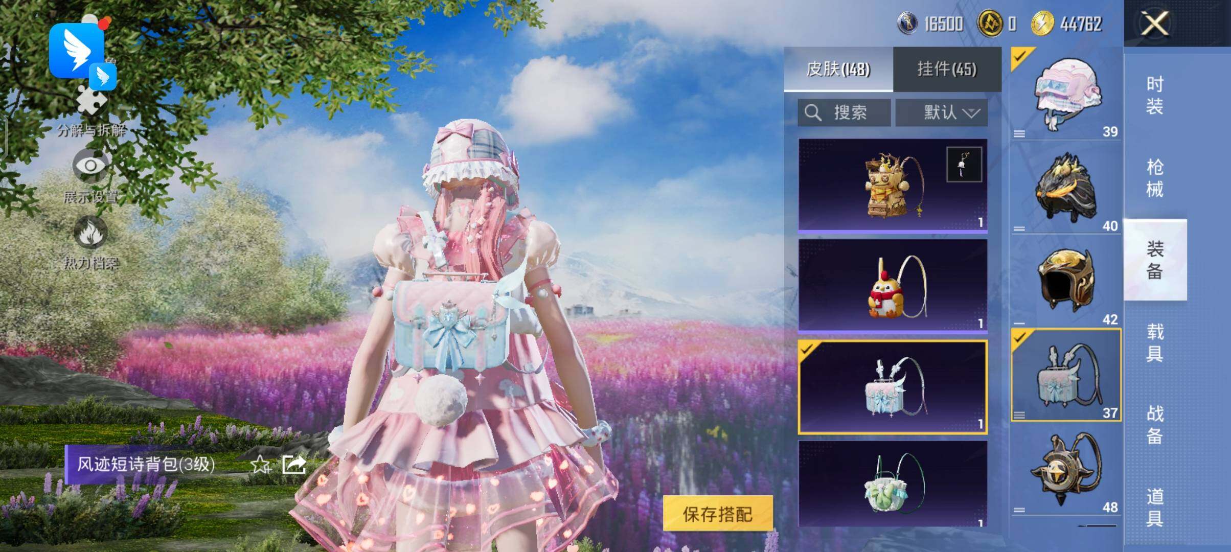 【粉色枪皮等级】:AKM-梦之光华(七级),SCAR-L-青春物语(五级),M762-鬼刀(五级),Kar98K-巳巳如意(五级),AM