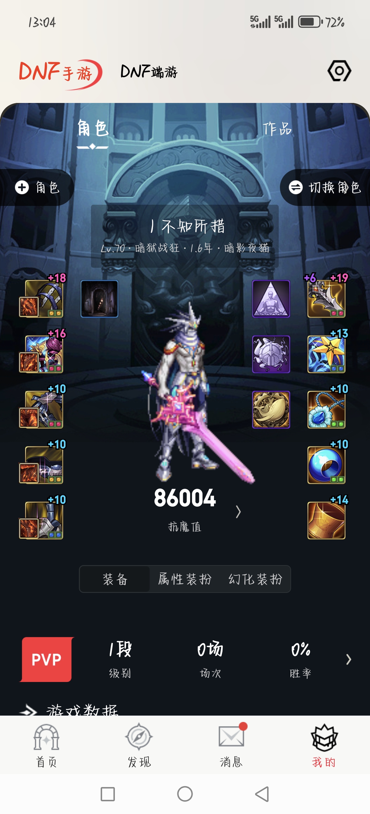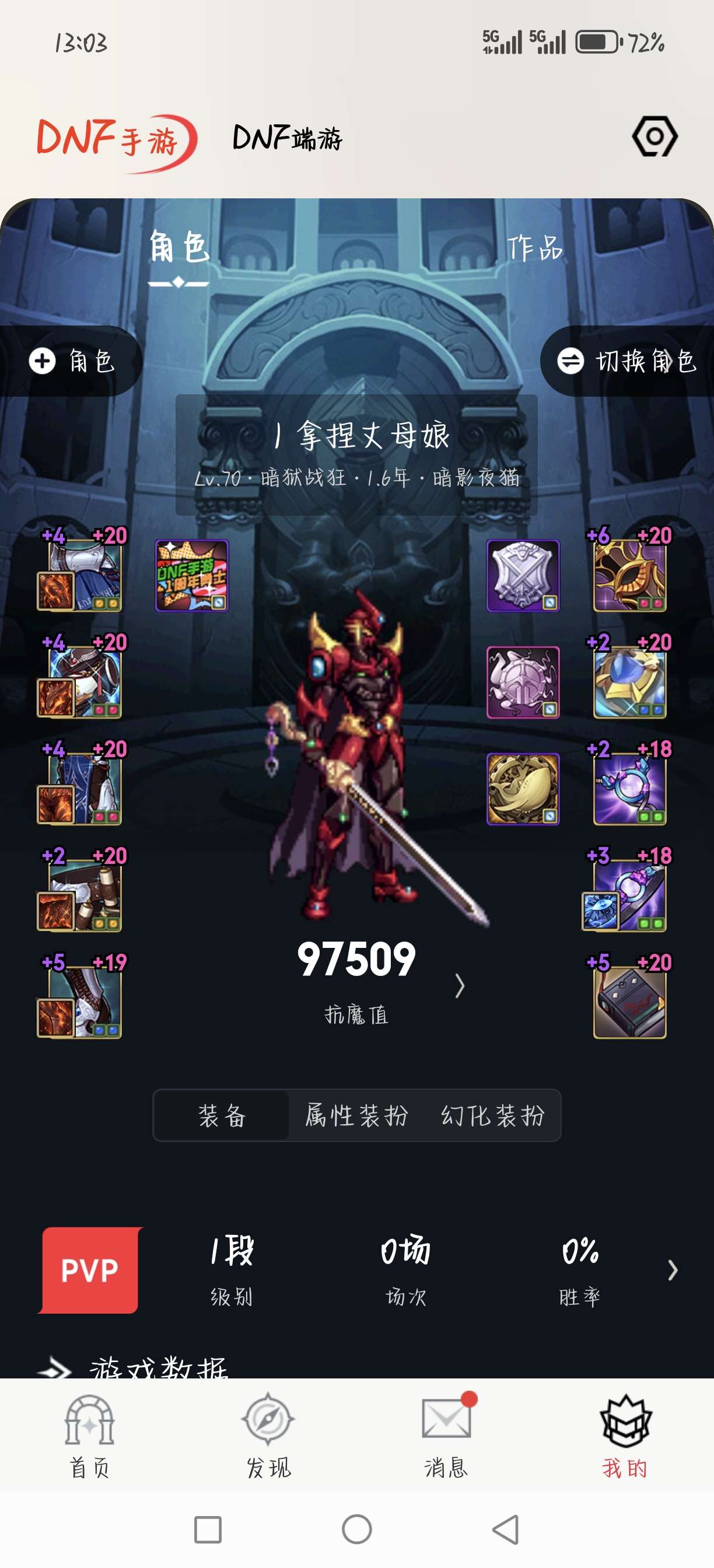 DNF手游【安卓QQ】狂战士,全身二十,毕业装备,9.7万+的抗魔