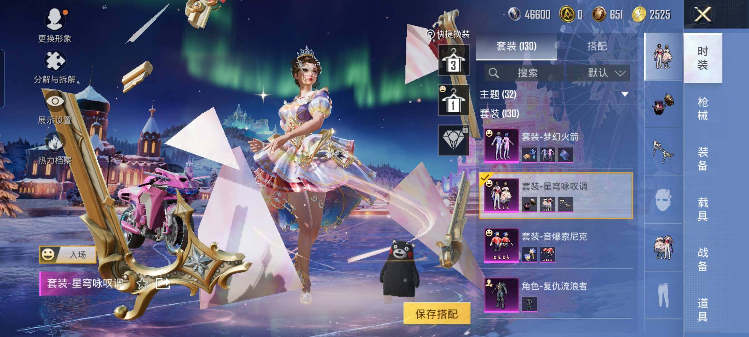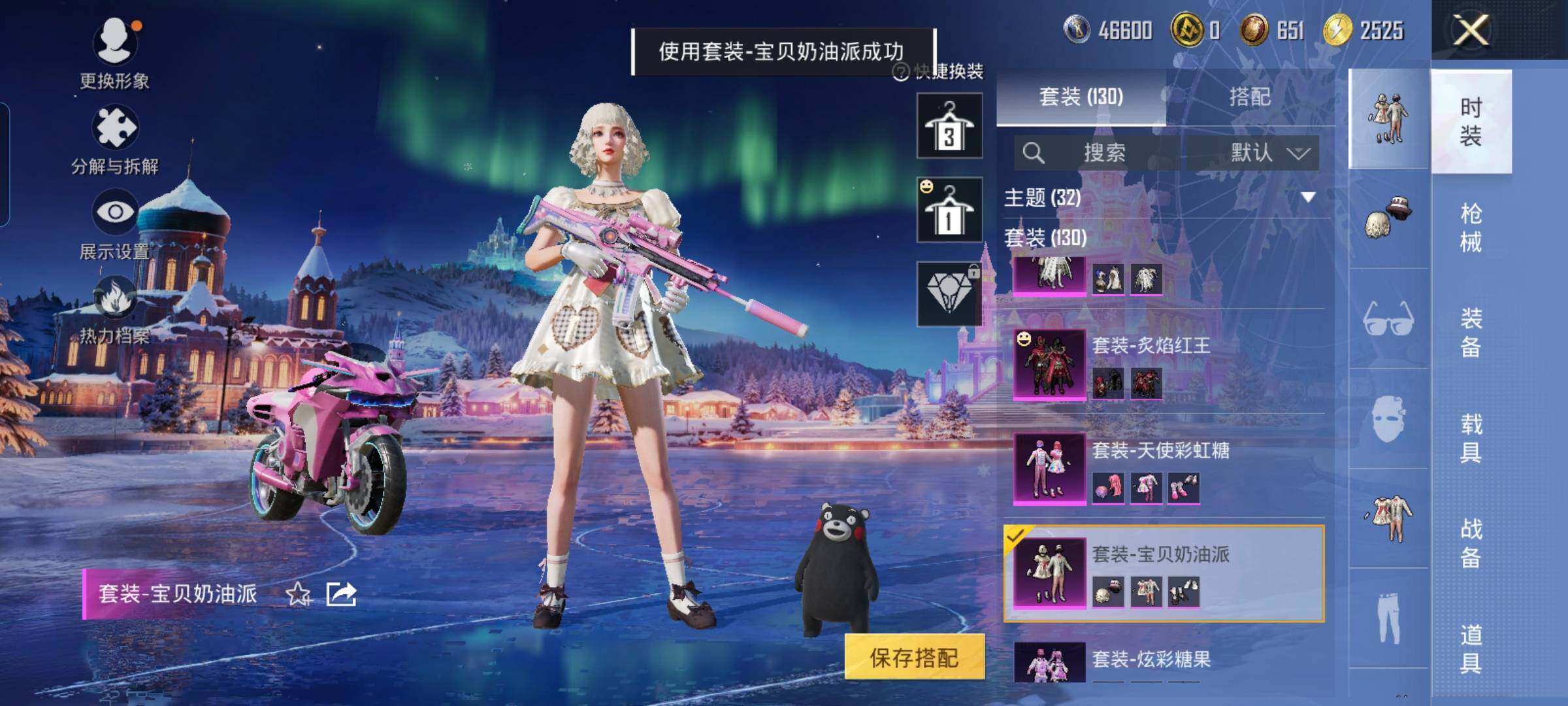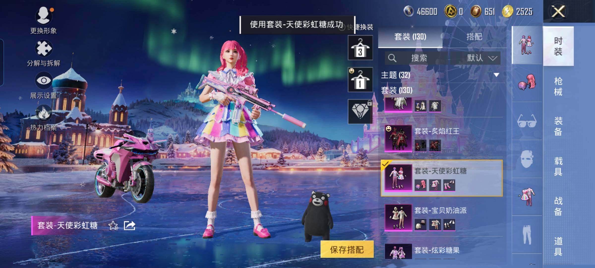 【粉色套装】:粉装-宝贝奶油派,粉装-天使彩虹糖,粉装-梦幻火箭,粉装-冰霜白皇,粉装-炙焰红王,粉装-彩虹鹿灵,粉装-闪光银龙,角色-复