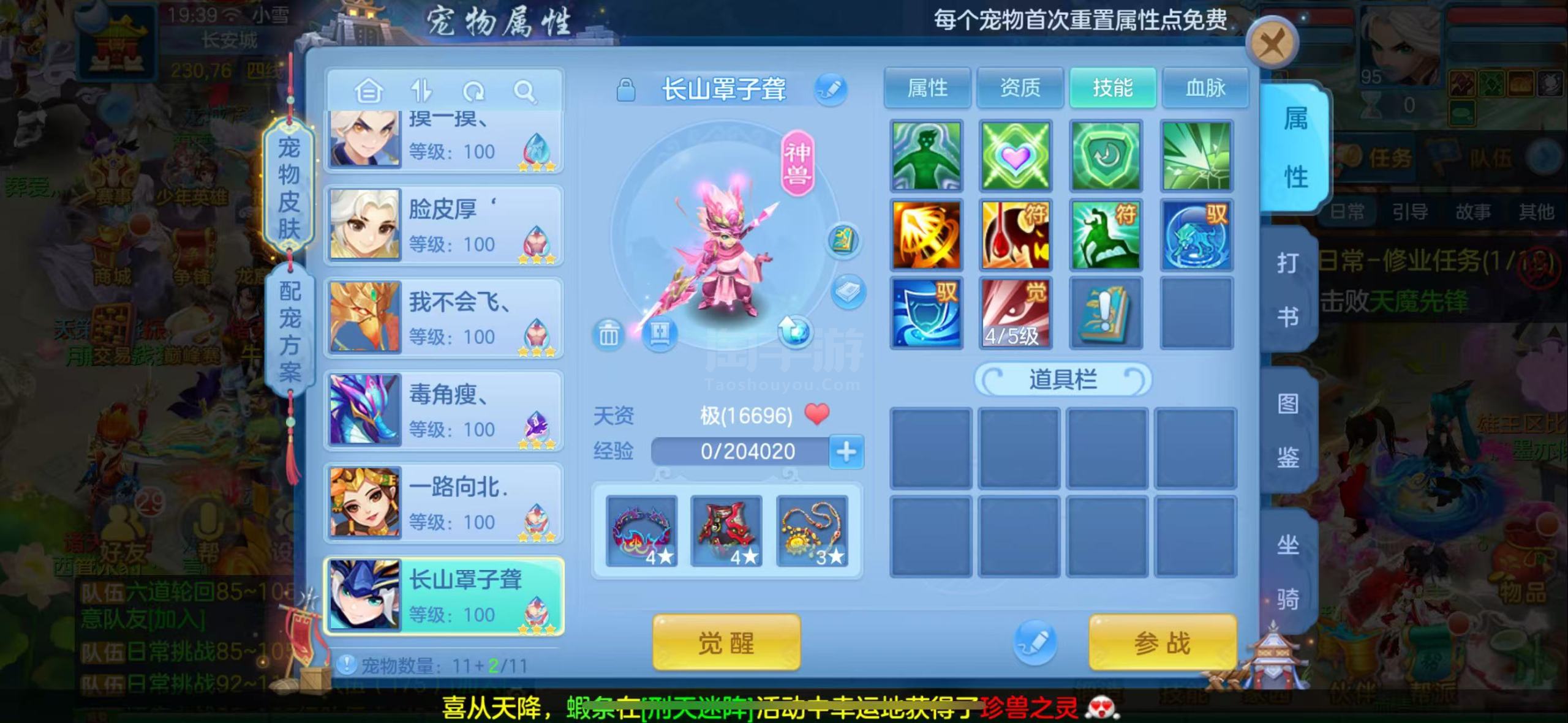 游云惊龙-95天策-6件12段易成长-8个6技能-高级坐骑