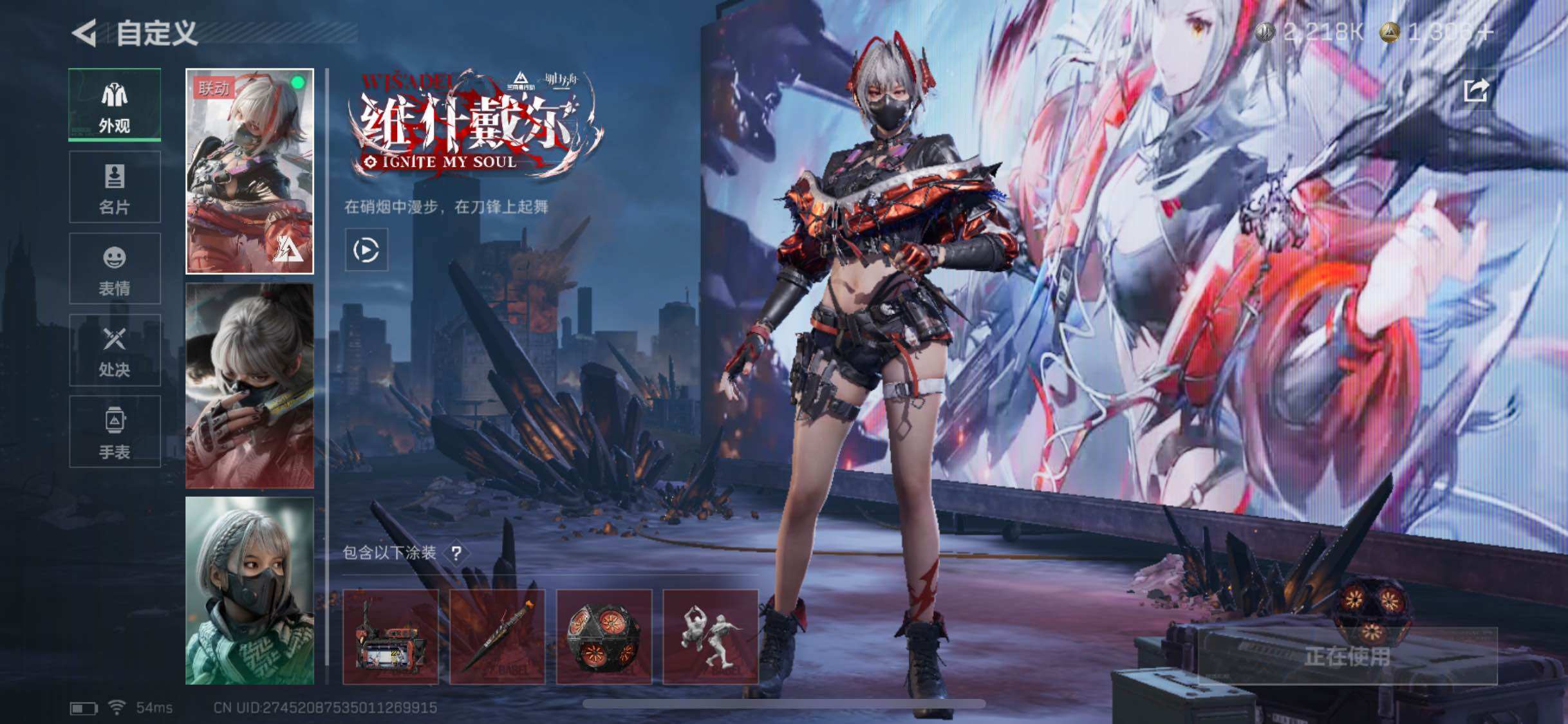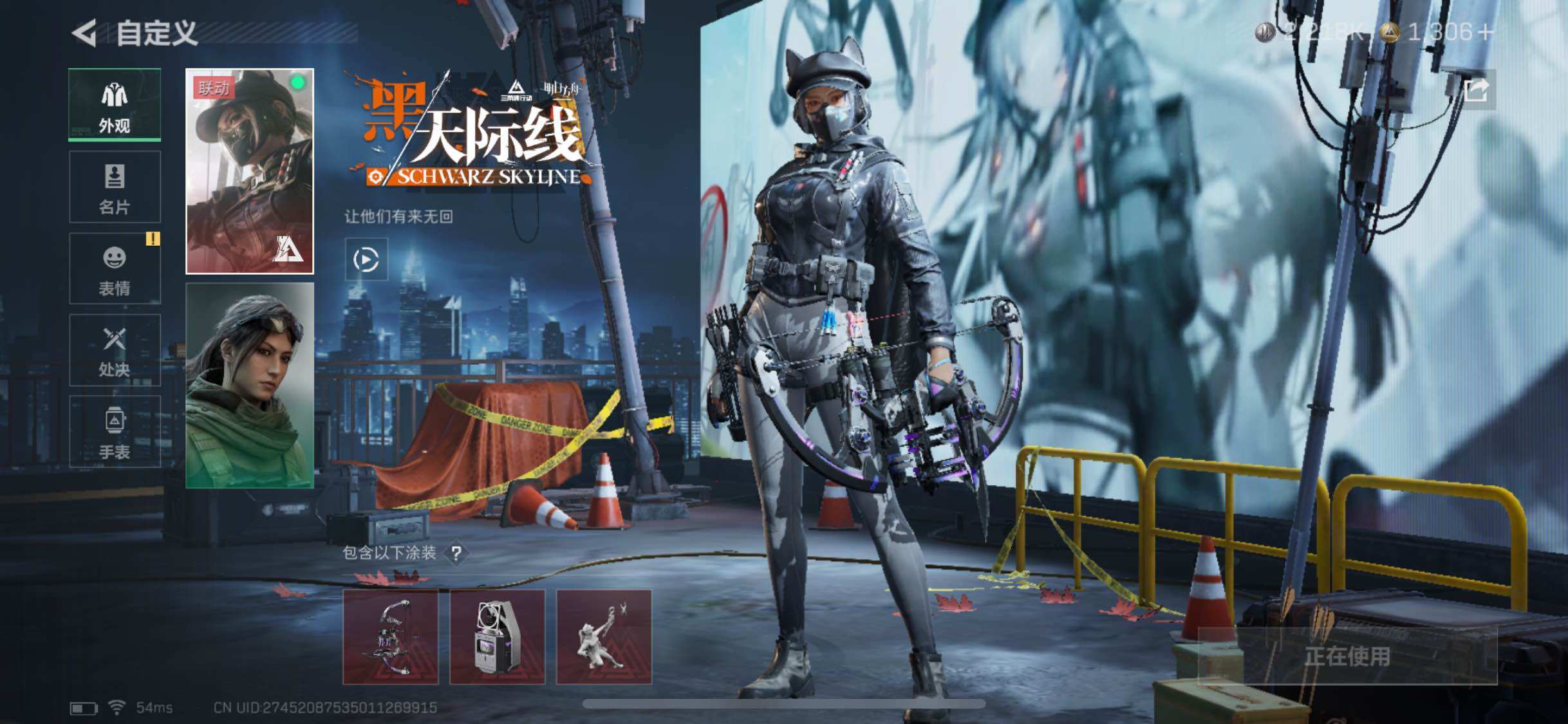【干员外观】:红狼-蚀金玫瑰,骇爪-水墨云图,露娜-黑·天际线,蛊-能天使午夜邮差,骇爪-维什戴尔,威