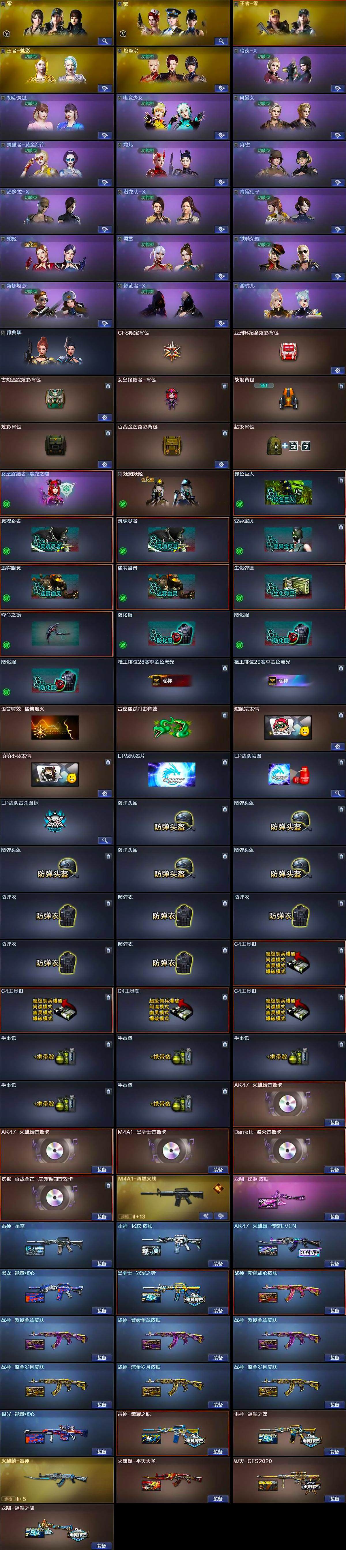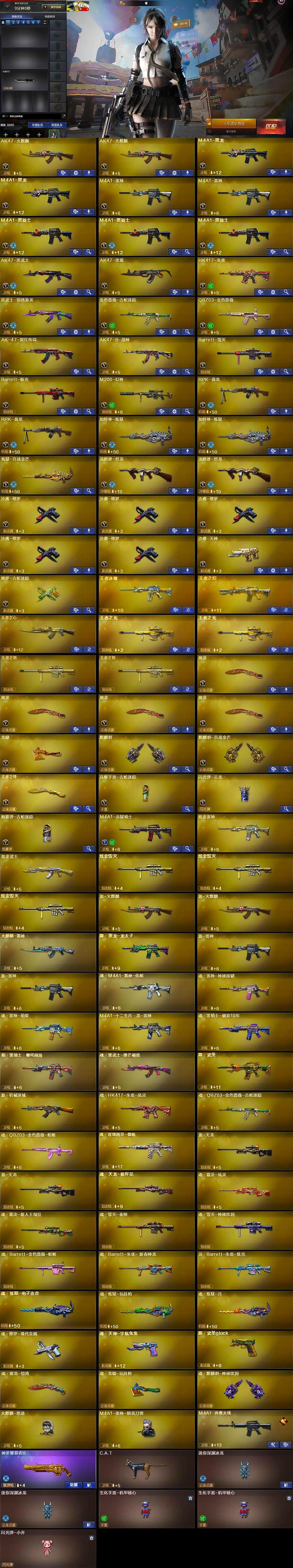 【热门武器】:QBZ03-金色蔷薇,HK417-朱雀,M200-幻神,金色蔷薇-古蛇迷踪,修罗-古蛇迷踪,金色小号,C.A.T,M4A1-黑骑士*3,汤姆逊-烈龙*2,RPK-盘龙*2,加特林-炼狱*2,羊驼玩偶,火麒麟-绝迹,沙鹰-修罗*5