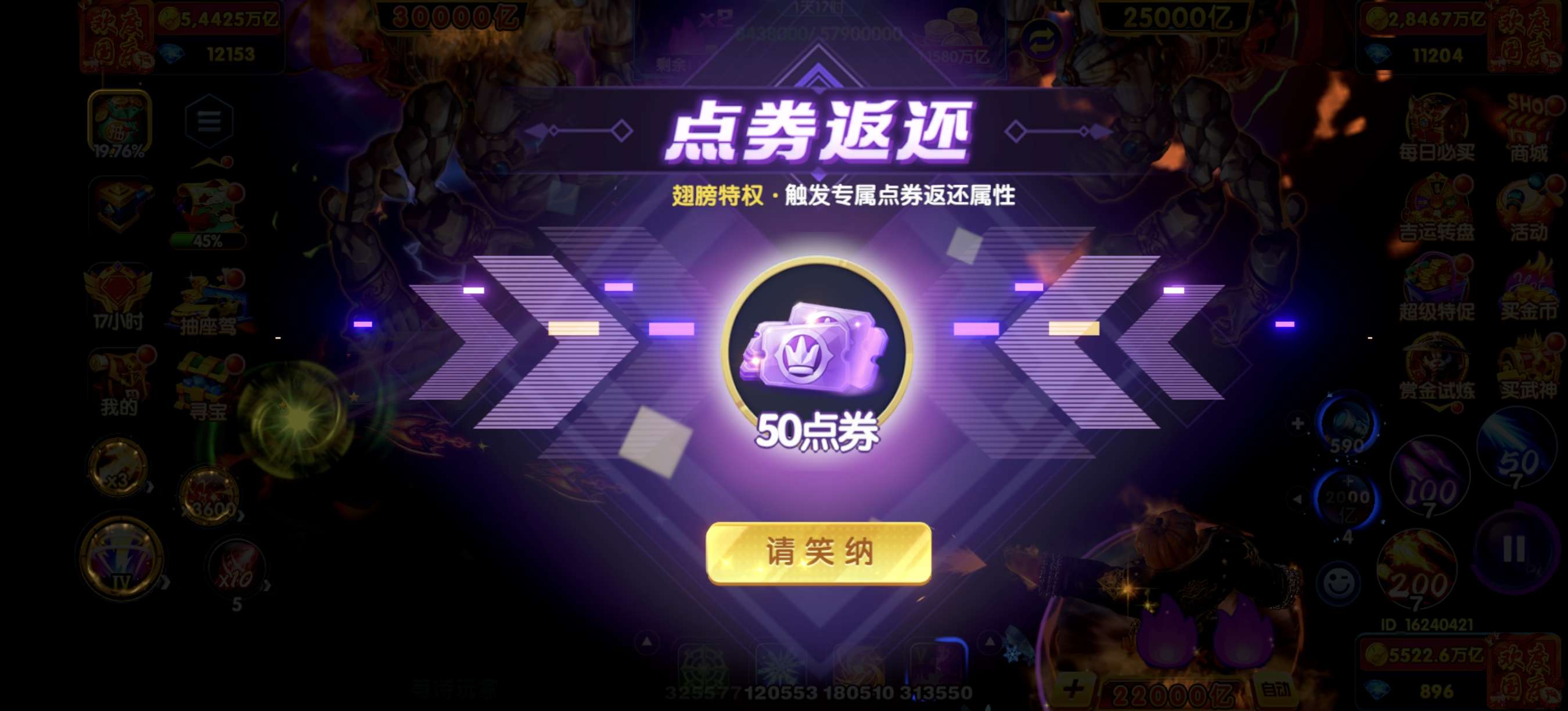 鱼乐米断190京万炮电磁天王4星洪荒3级武神600连击