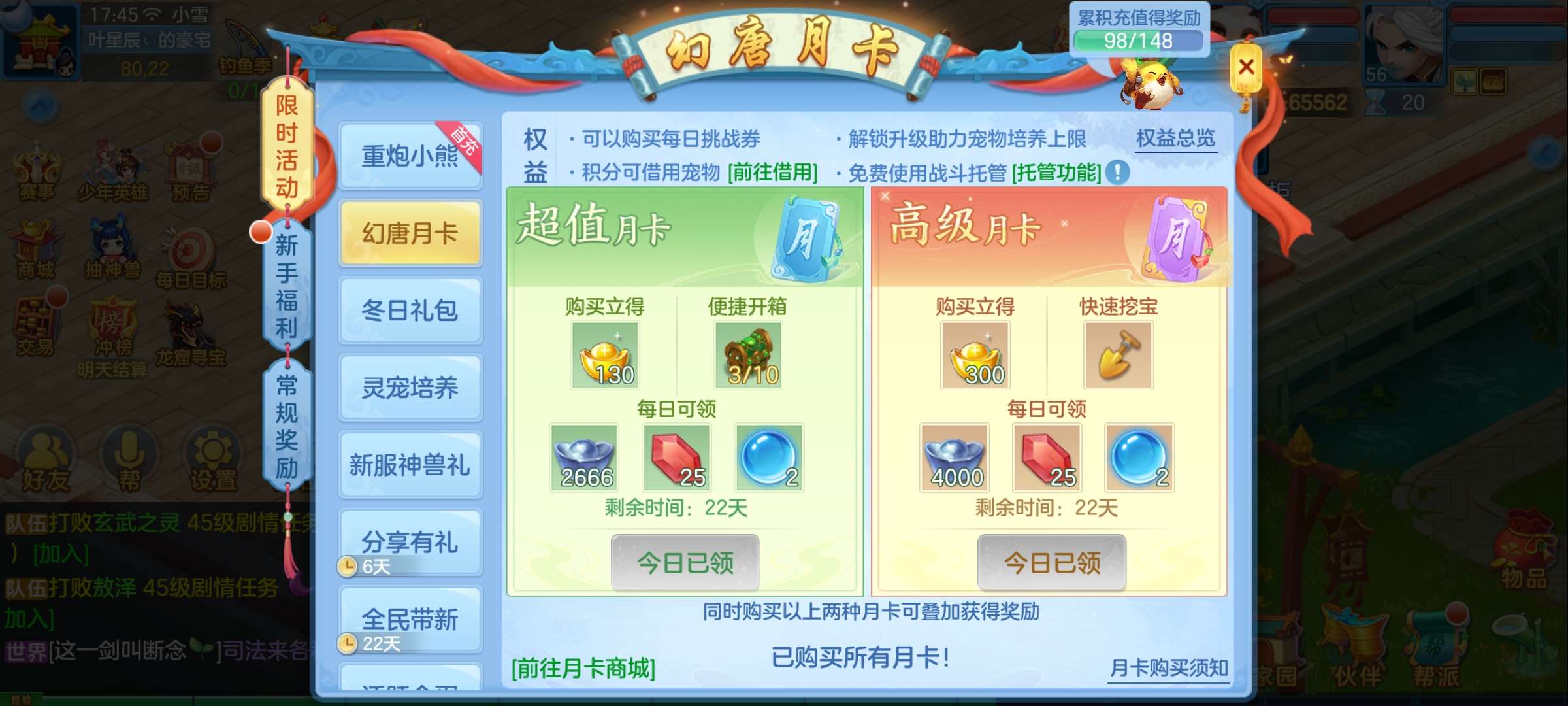 幻唐志:逍遥外传(神武4)【安卓官方】少年英雄男天策100w神功月卡