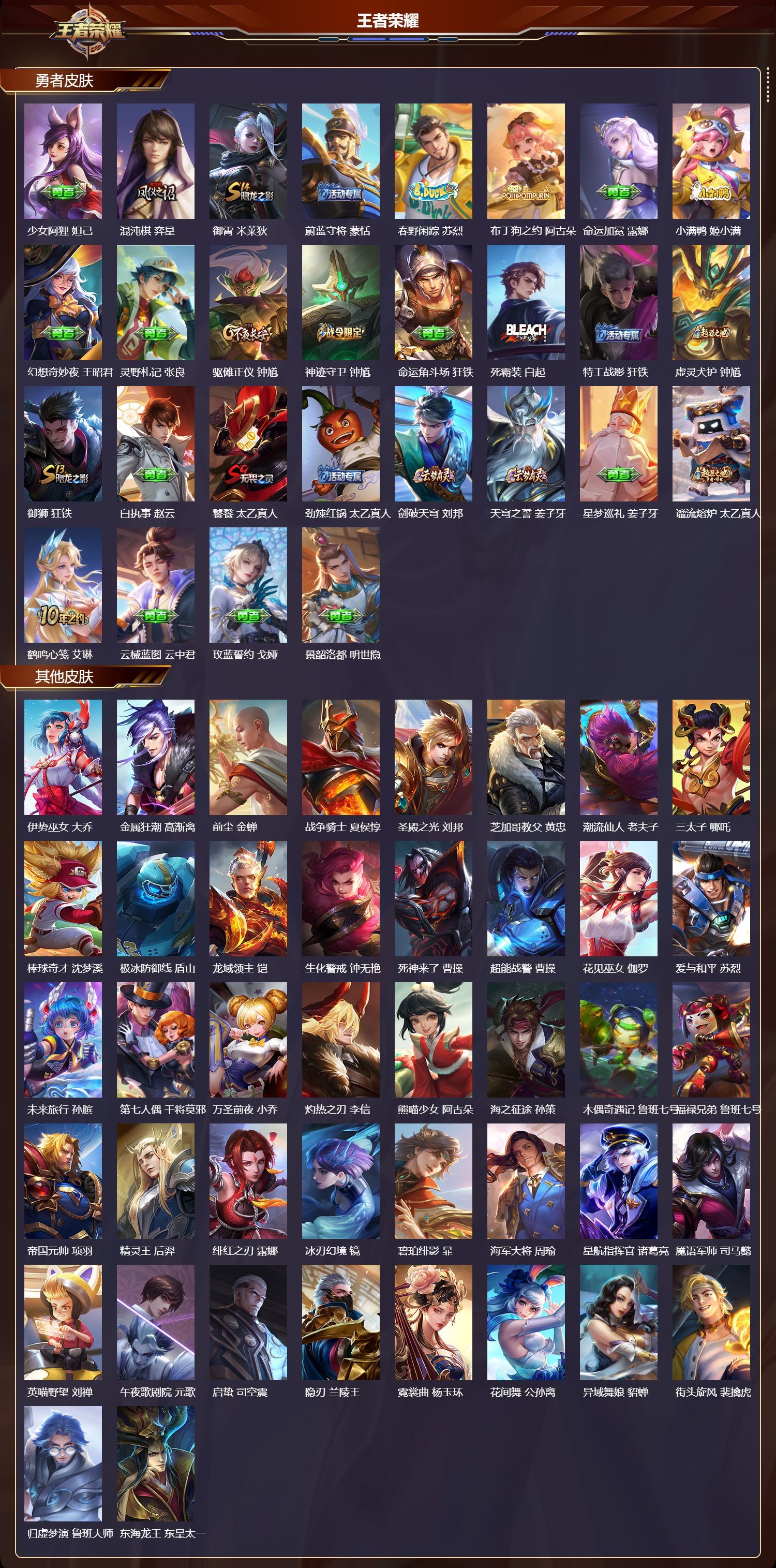 绝世王者/316皮肤/126英雄/1典藏/19传说/85史诗/胖达荣荣 梦奇,武圣 关羽,启明星使