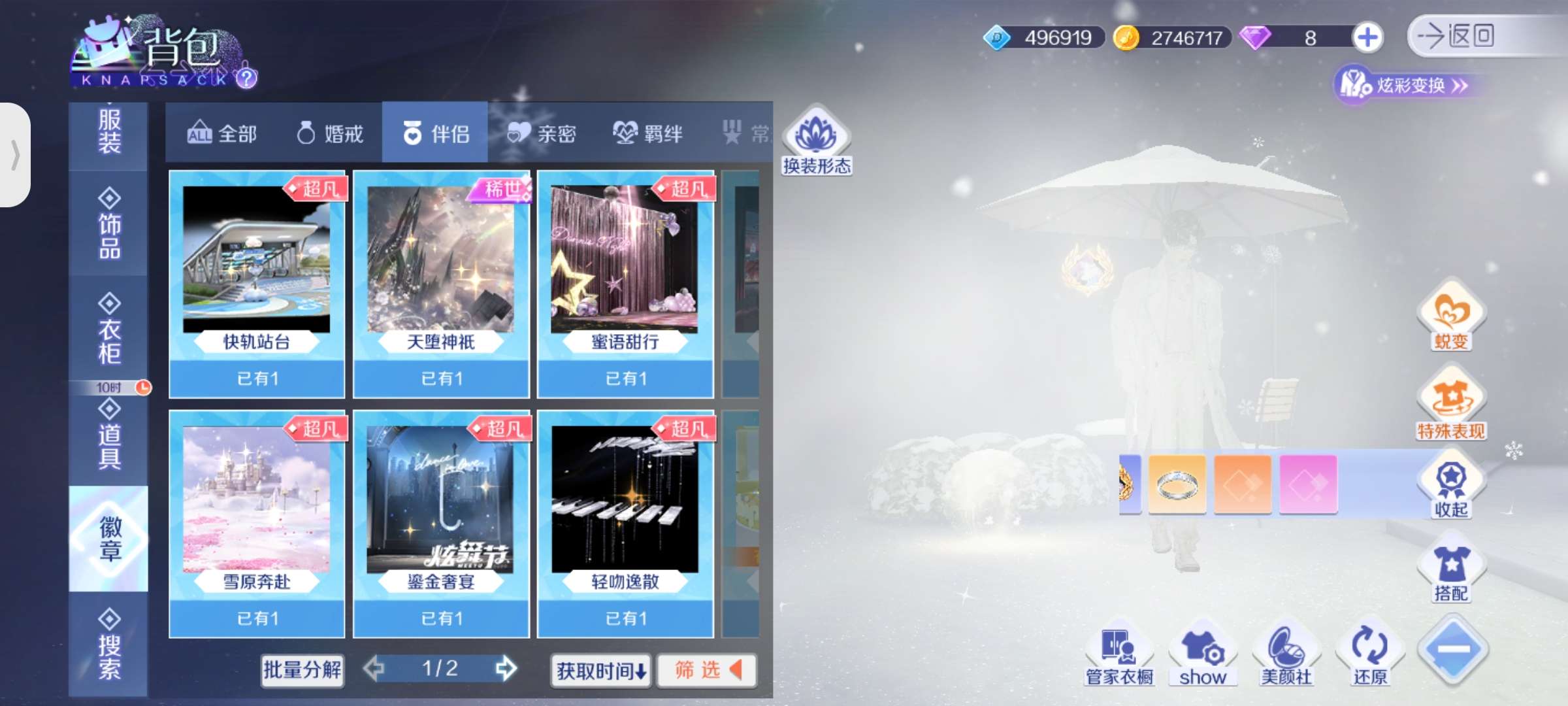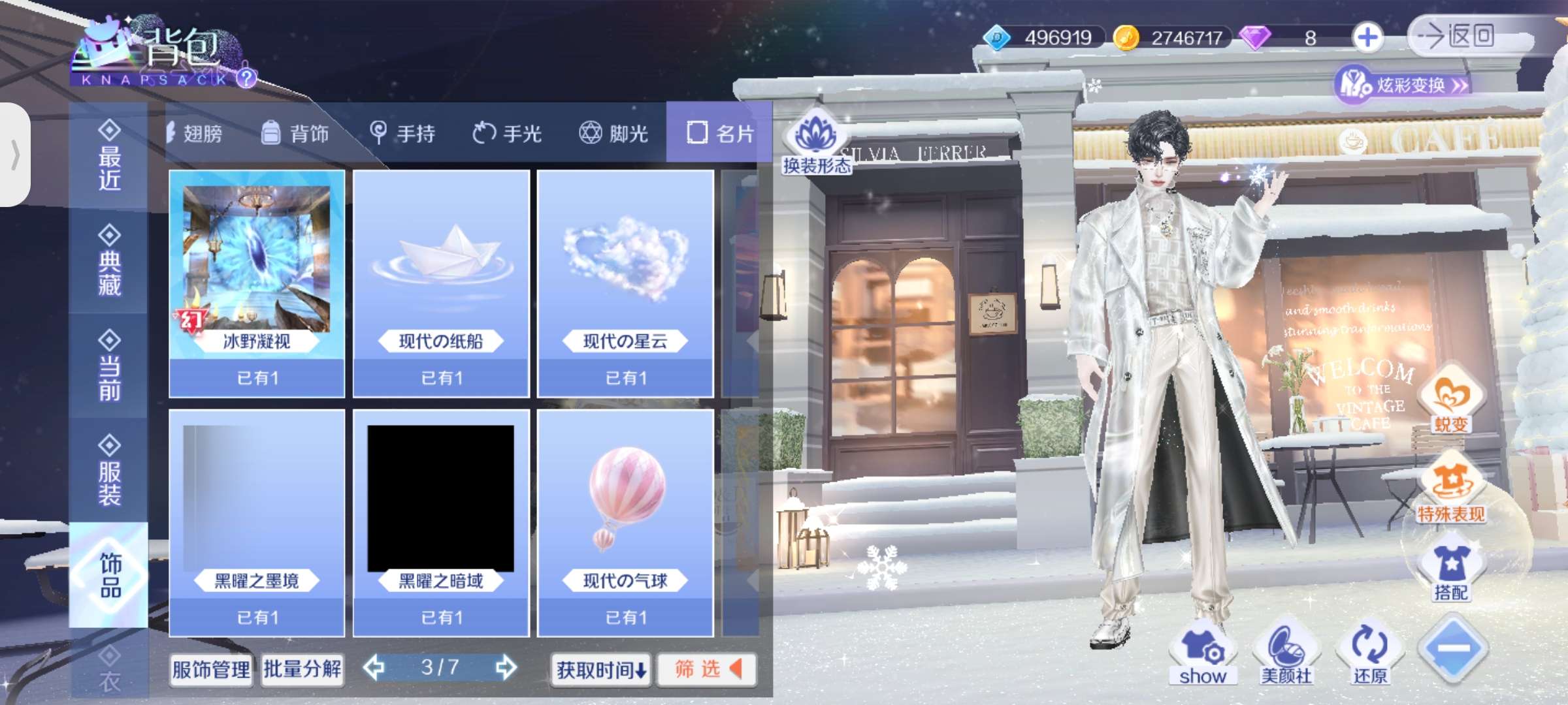 刚玩两个月的v6男号,抽奖很白。都是新品衣服,好多都差一个成图。有白皮有定制脸。有黑名片。具体请上号