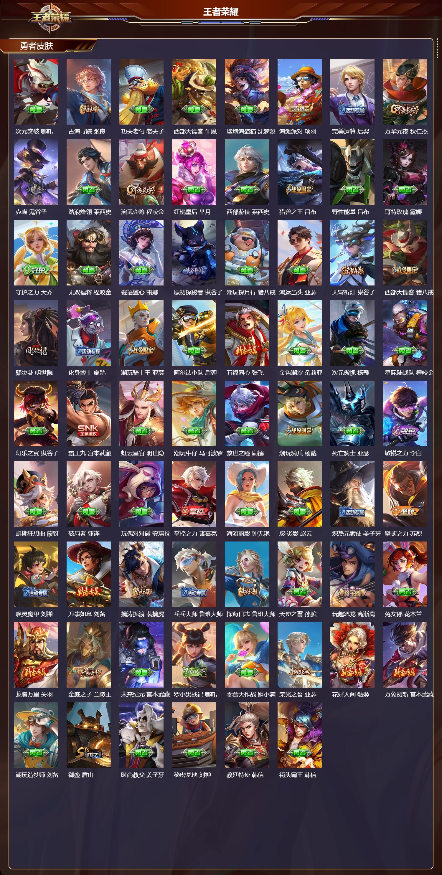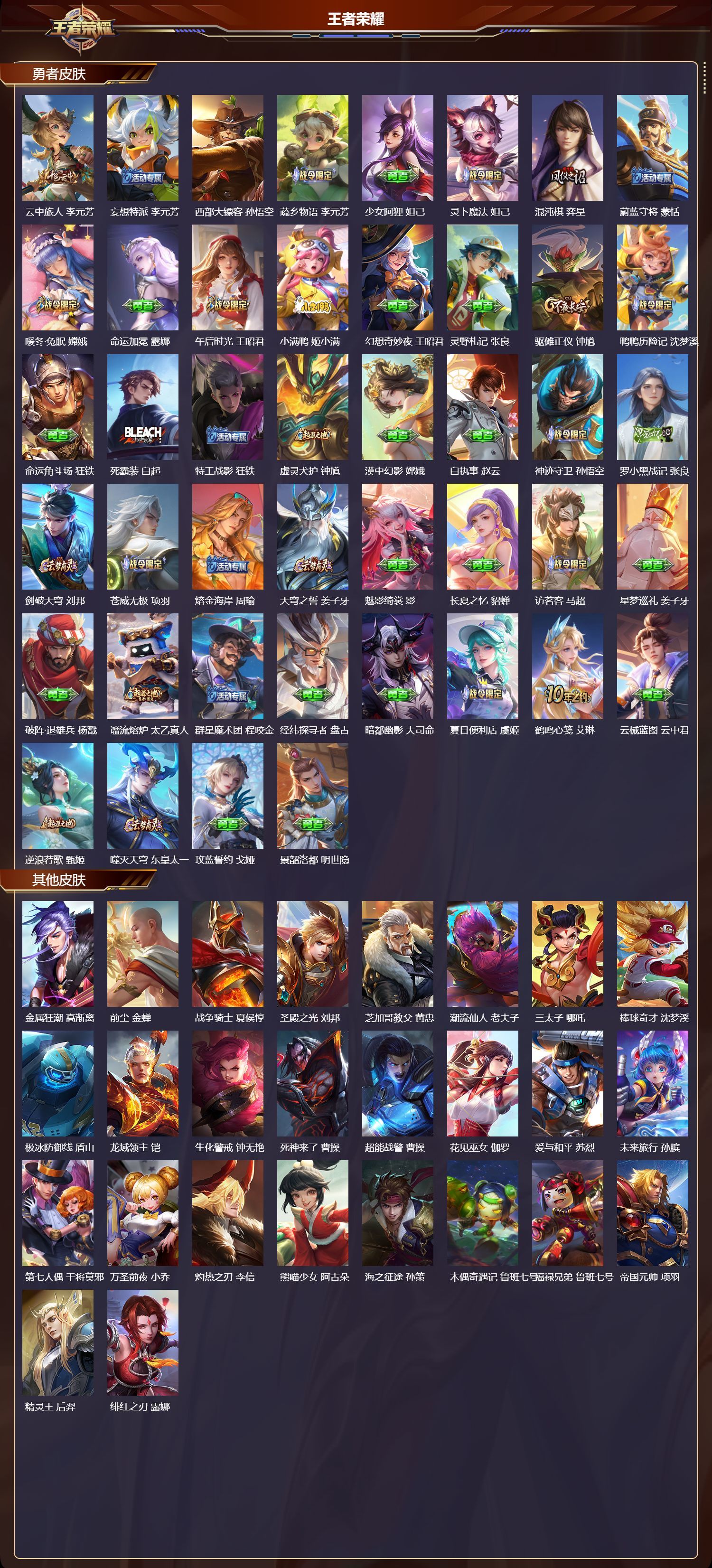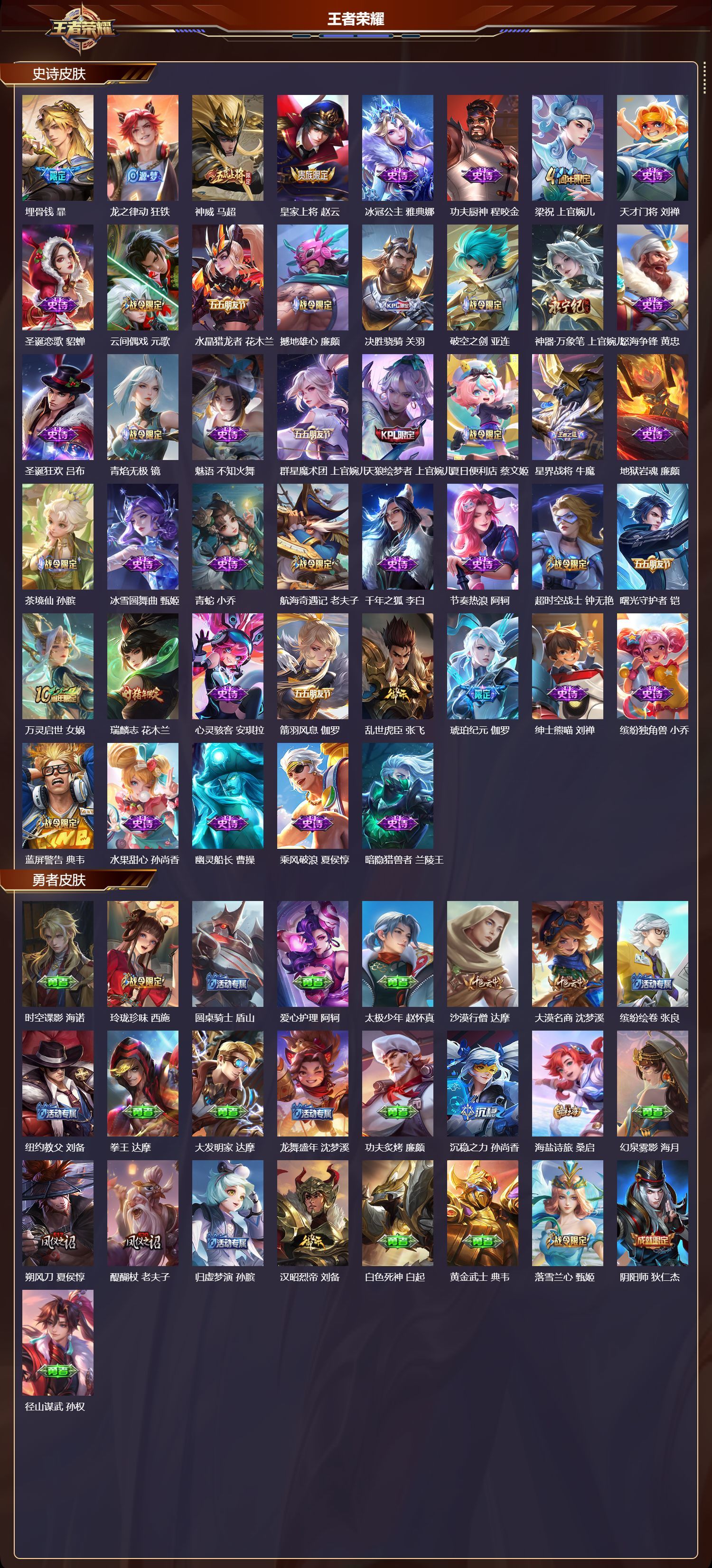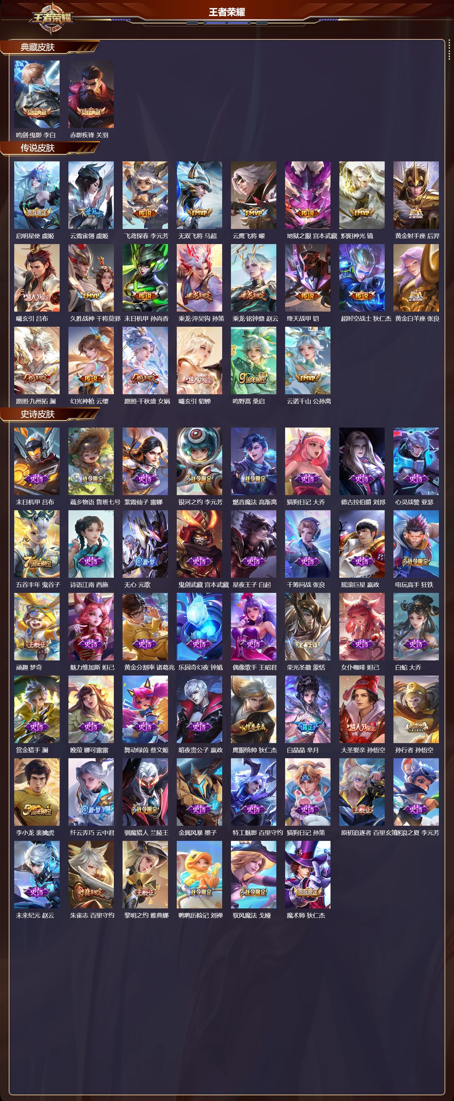 【贵族8】绝世王者/331皮肤/127英雄/2典藏/22传说/91史诗/9稀有