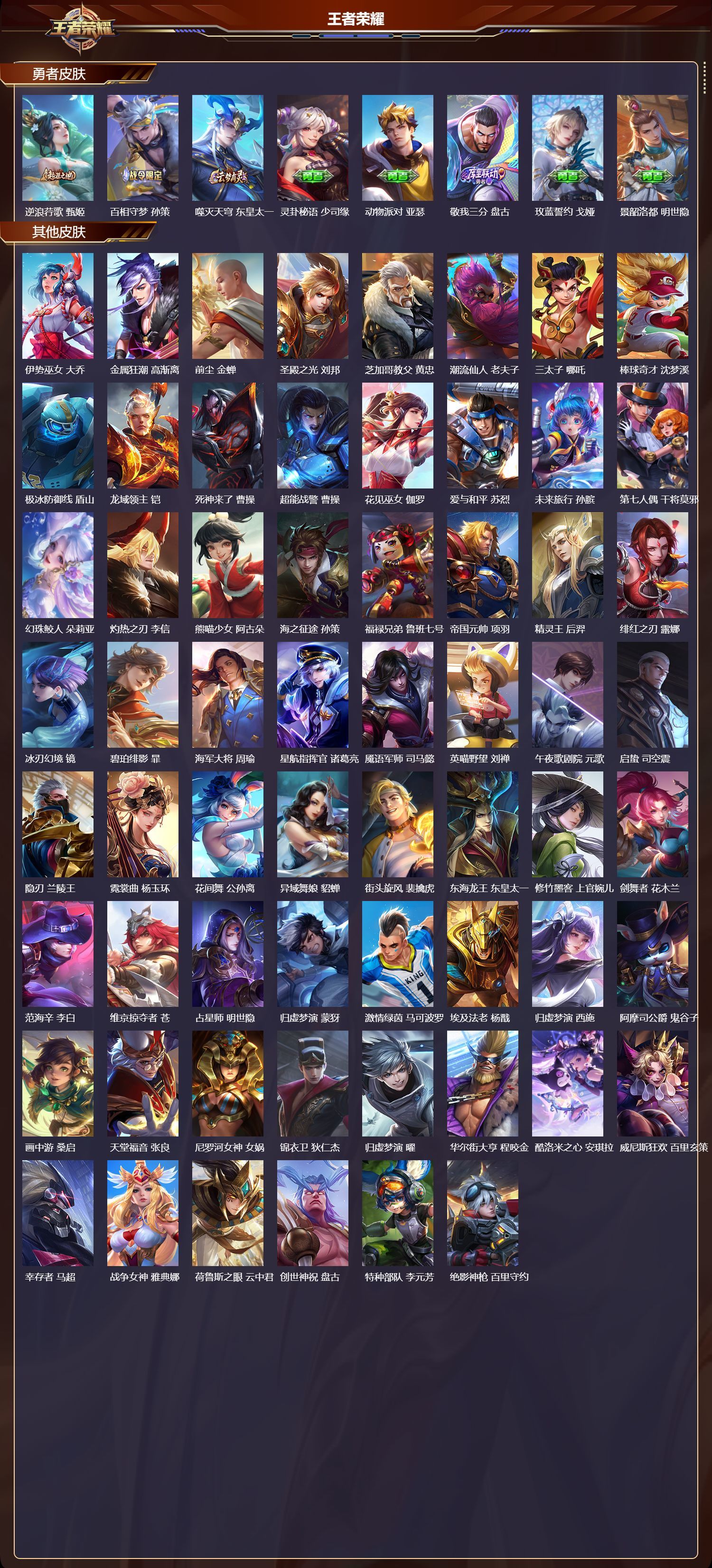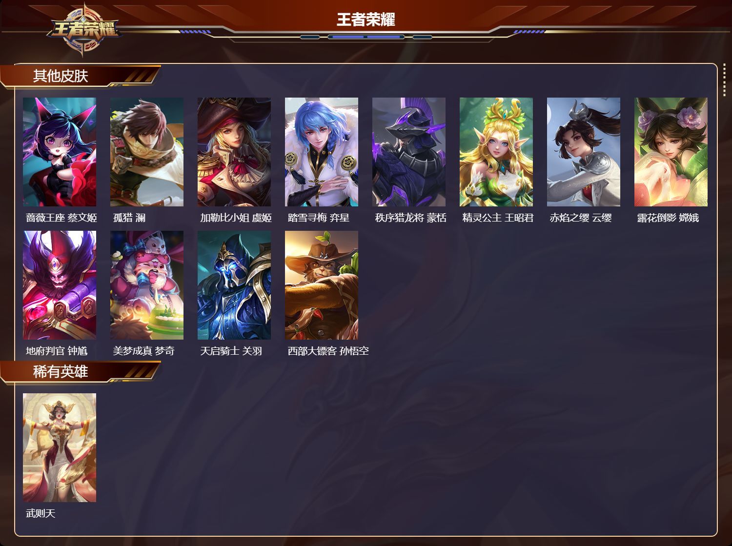 3典藏/1无双/1珍品传说/28传说/104史诗/10稀有英雄/天鹅之梦 小乔,九霄神辉 花木兰