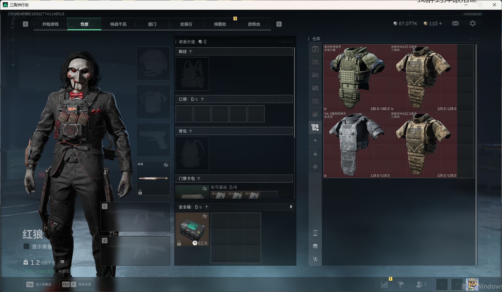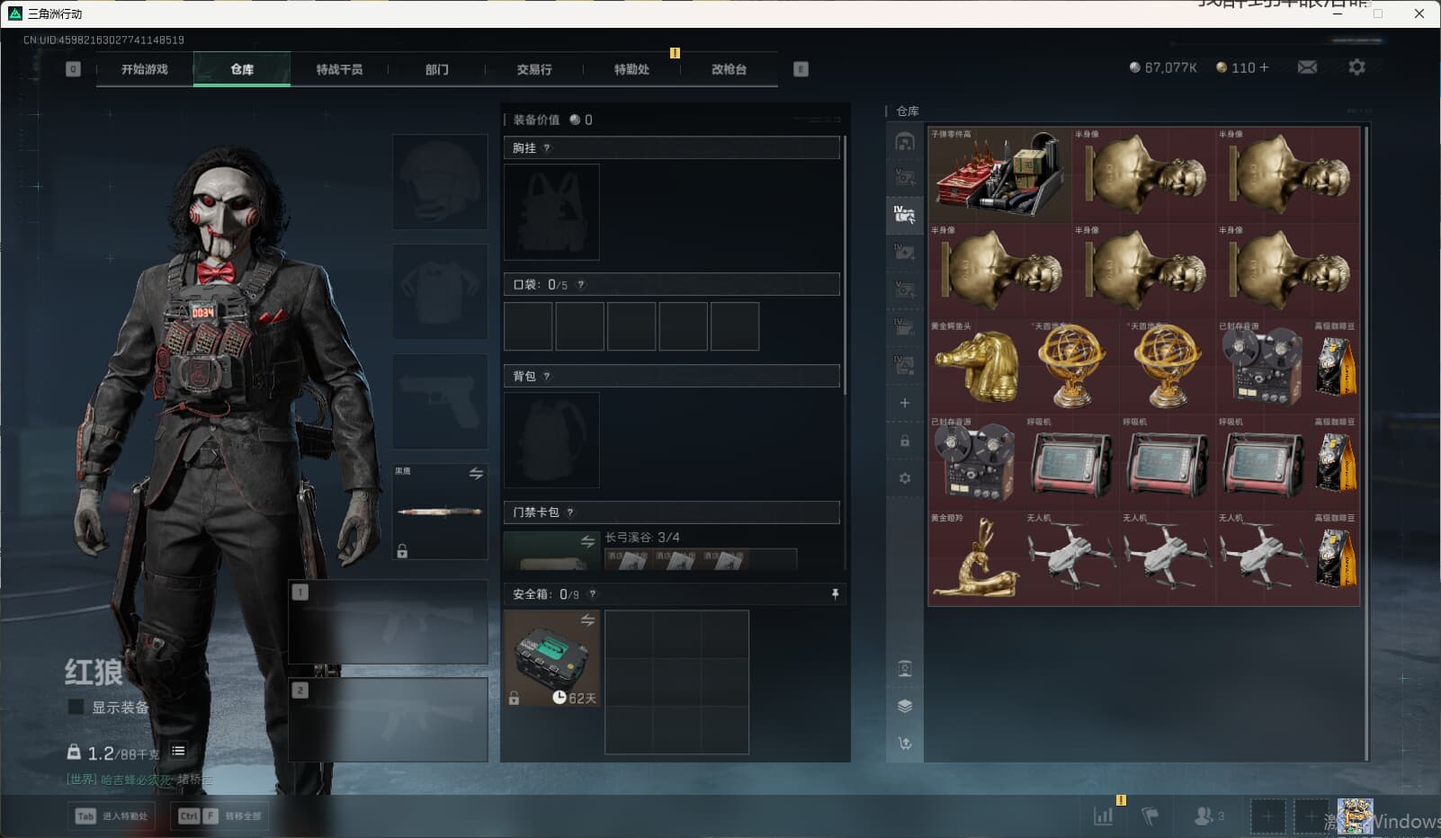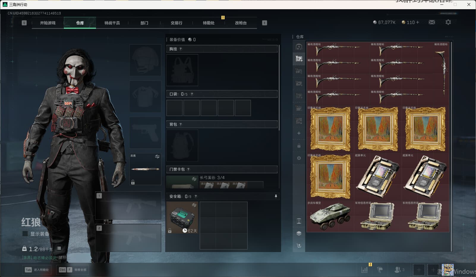 SSyc8704/QQ区/S7顶级安全箱/111发AW子弹/总资产400M/哈夫币6700W/【红狼