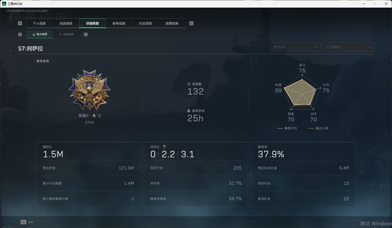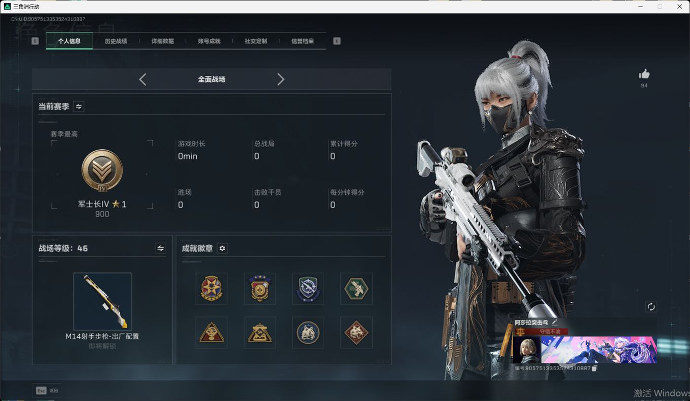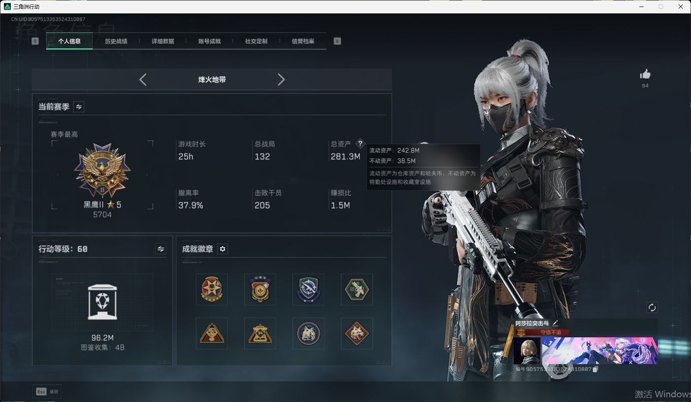 SSN6372/QQ区/哈夫币220W/总资产281.3M/行动等级60/战场等级46/近战/黑鹰/