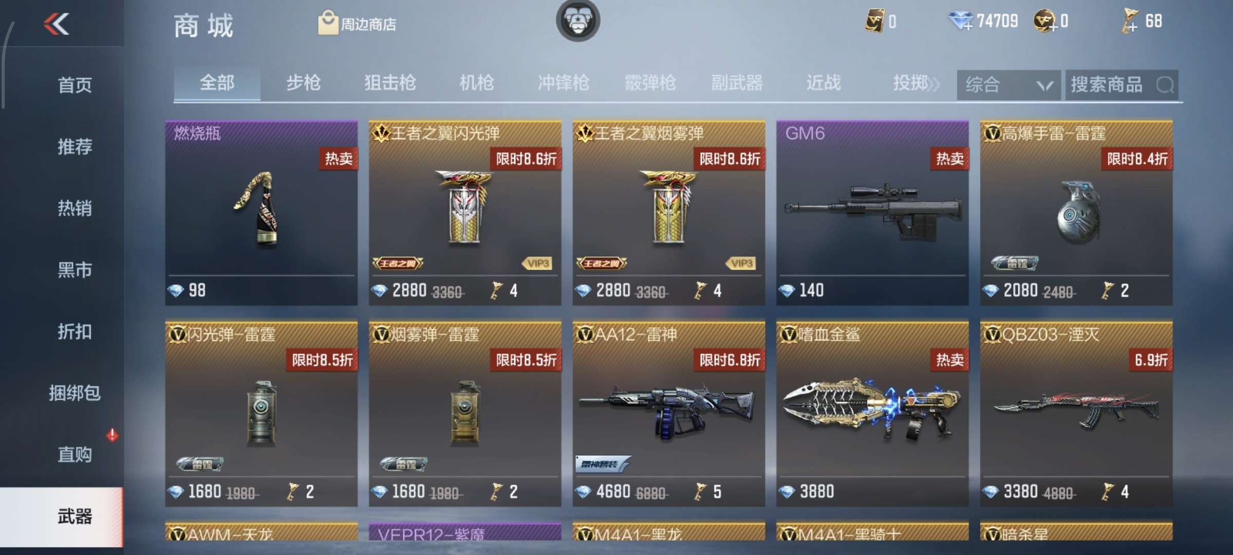 仲达75999砖石68英雄钥匙30英雄武器AK47-血武士AK47-华夏传说AK47-黑鲨AK47-