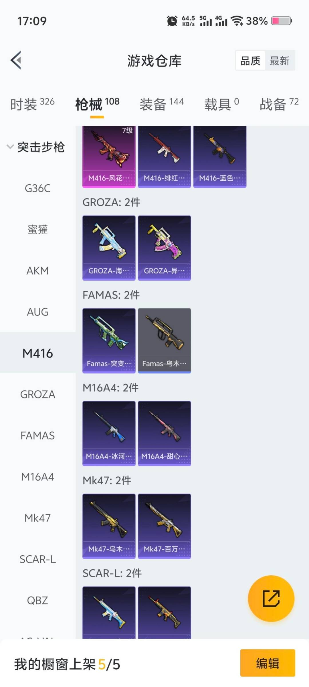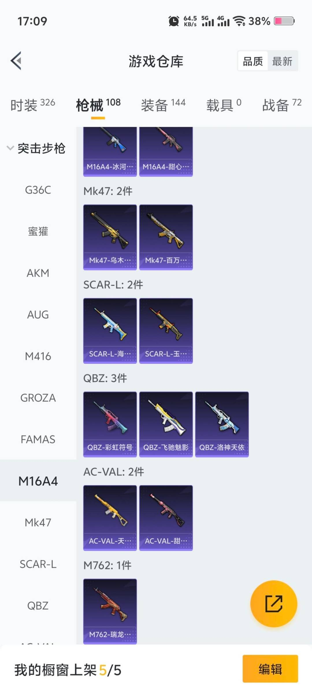 4粉装 5特效枪 5印记 可二次 可修改实名 【热门装扮