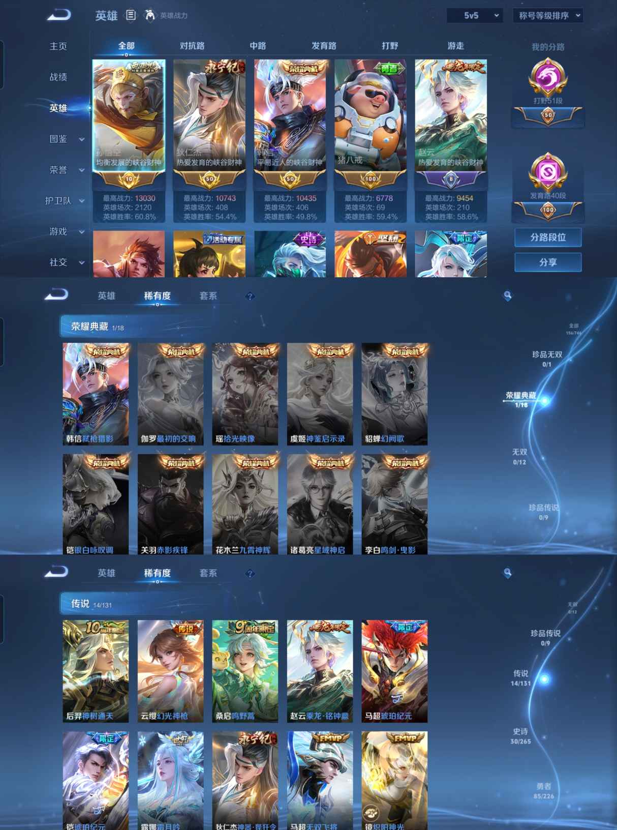 MWZ104065【打野51段 发育路40段 4金标3万战 金标孙悟空13030战力 金标狄仁杰10743战力 金标韩信10435战力 金标猪八戒6778战力V7 1典藏 14传说 】安卓Q-157皮肤-126英雄