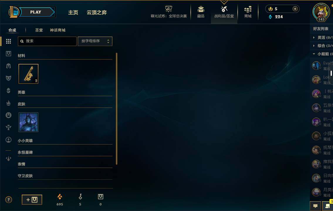 【LD4340】125英雄/47皮肤/1神话/11限定/4臻彩/16炫彩/8传说/1史诗/铂金账号等级:143/冠军之血希瓦娜凯旋圣装/弹幕天使卡莎炽天使勇敢/星之守护者辛德拉未来之光/红莲之刃锐雯/点心宝贝阿木木/幽梦玫瑰辛德拉/水晶玫瑰斯维因/北极星守望者佐伊/十五周年纪念希维尔/SKTT1扎克/暗裔英雄盖伦/胜利剑圣易/胜利之运崔斯特/魅惑女巫娜美/魅惑女巫悠米/双城之战2微光实验室辛吉德/血石领主弗拉基米尔/恶魔之刃泰达米尔/源计划泯灭雷克顿/神王盖伦/焰尾妖狐阿狸/神王德莱厄斯/神龙尊