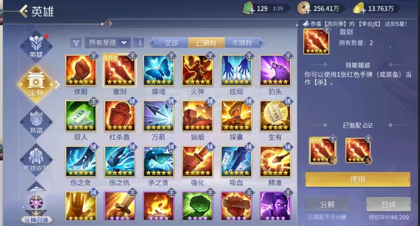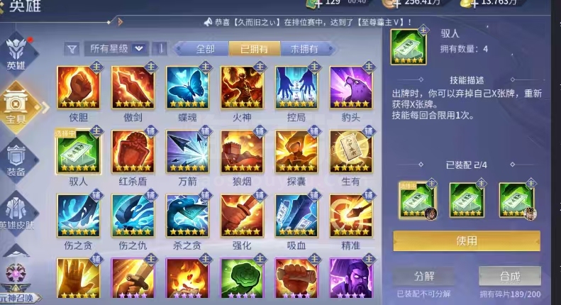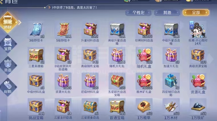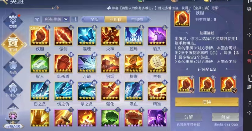 9侠 2傲 3蝶 1火 3控 4驭 1爆 2探囊2狼烟 1万剑 1生