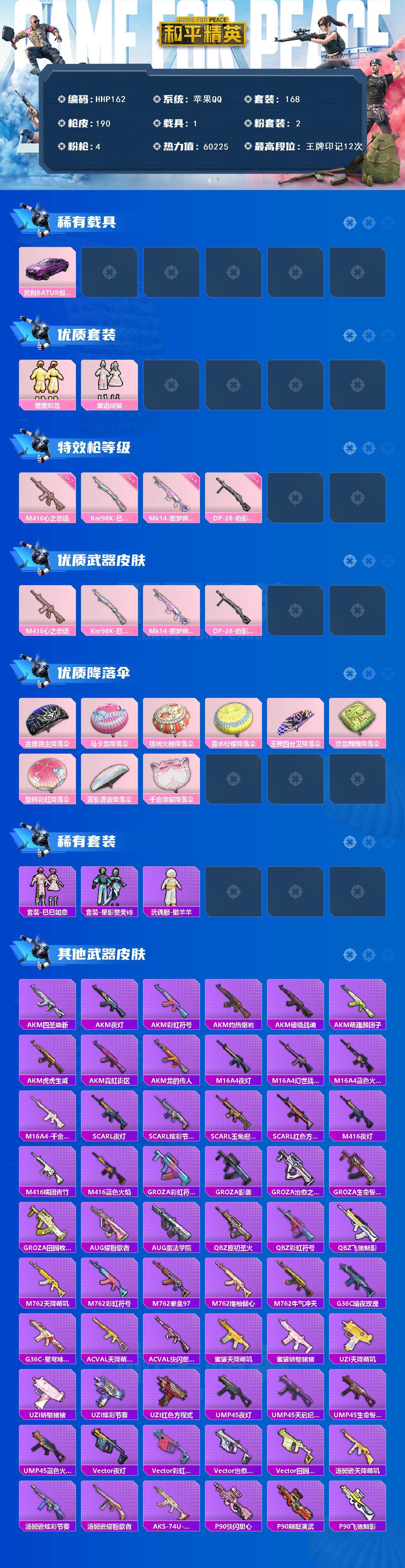 iOS 女生号/绝世印记/粉熊背包/暖暖奶龙/蜜语绒猫/深海小丑鱼-2粉装-4特效枪-1载具-1粉色飞行器-60225热力值-12王牌印记-168套装-190枪皮