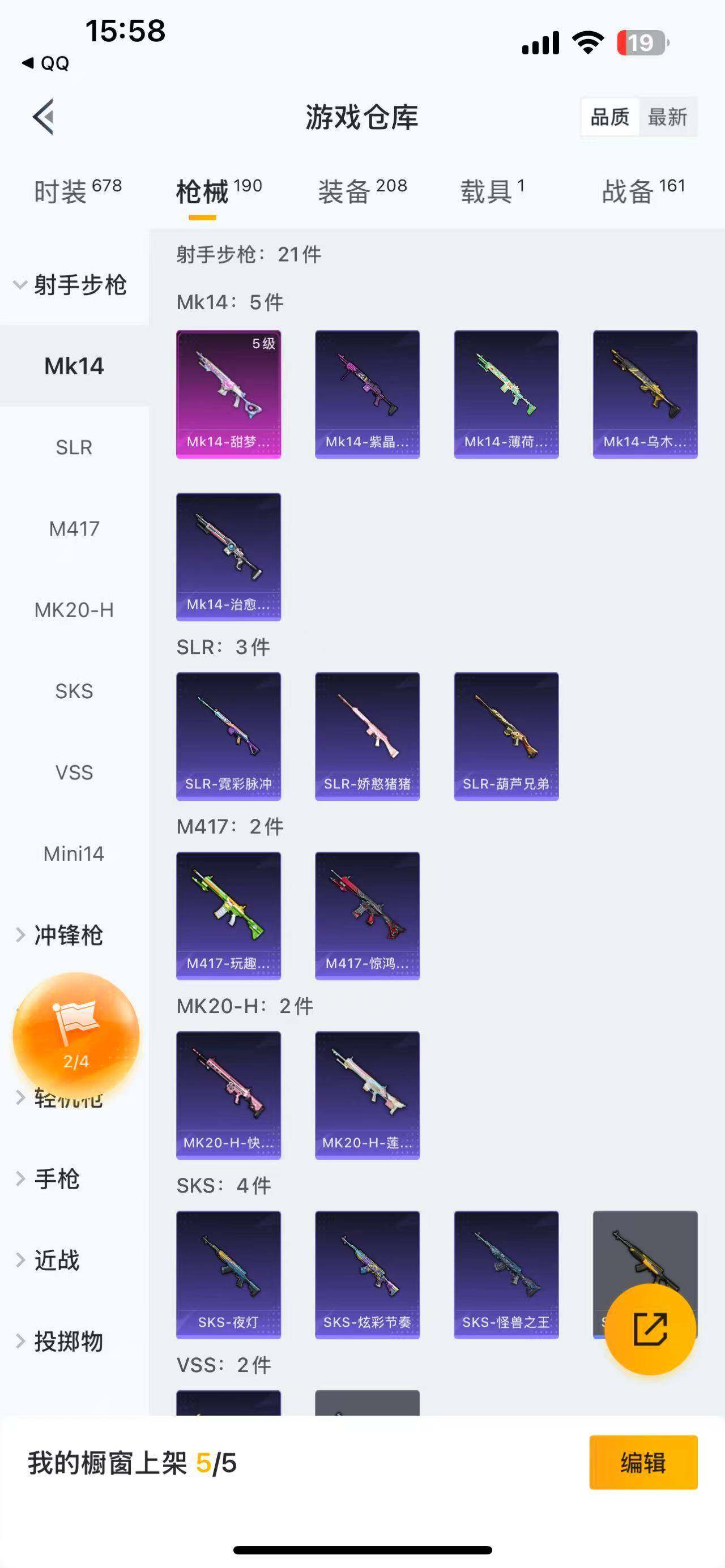 【粉色枪皮等级】:M416-心之恋语(七级),Kar98K-巳巳如意(五级),Mk14-甜梦熊击(