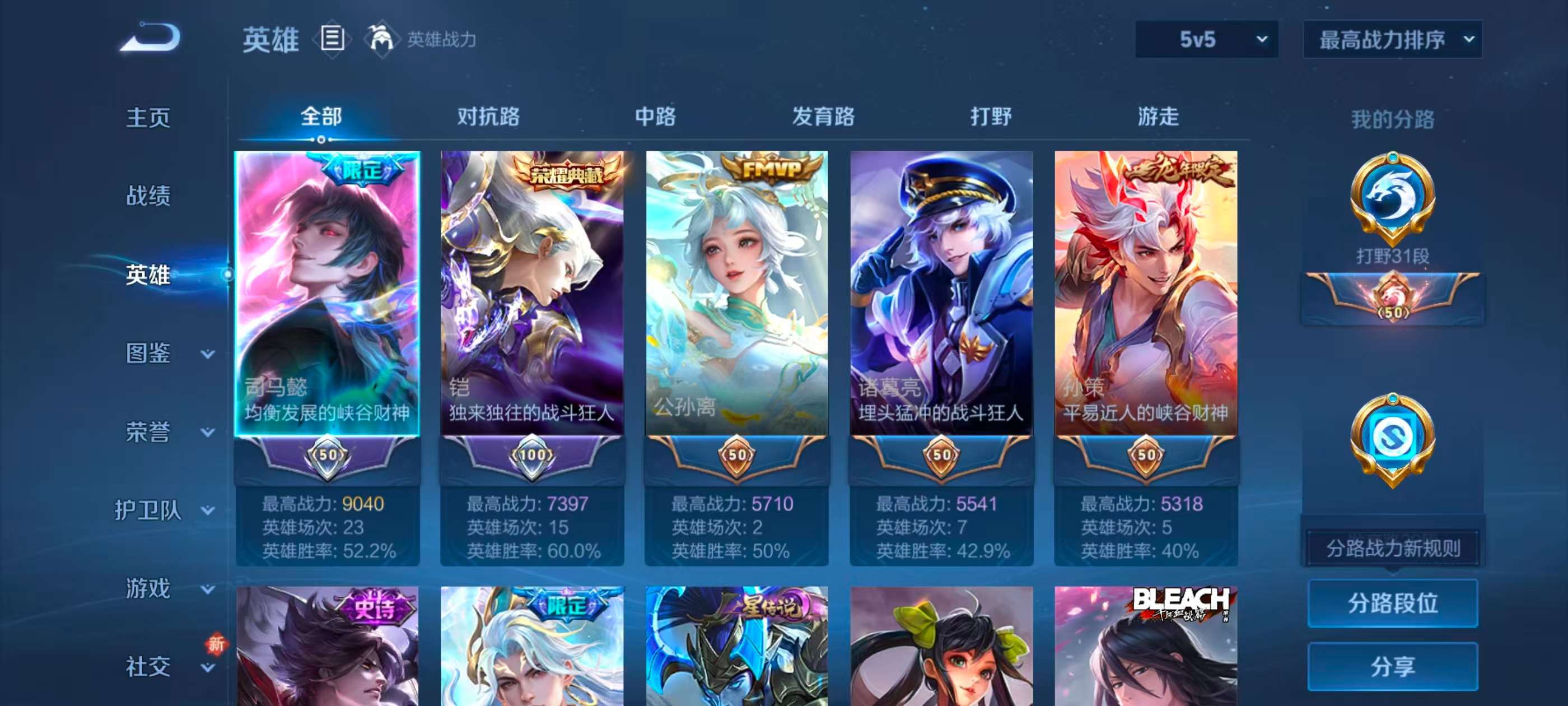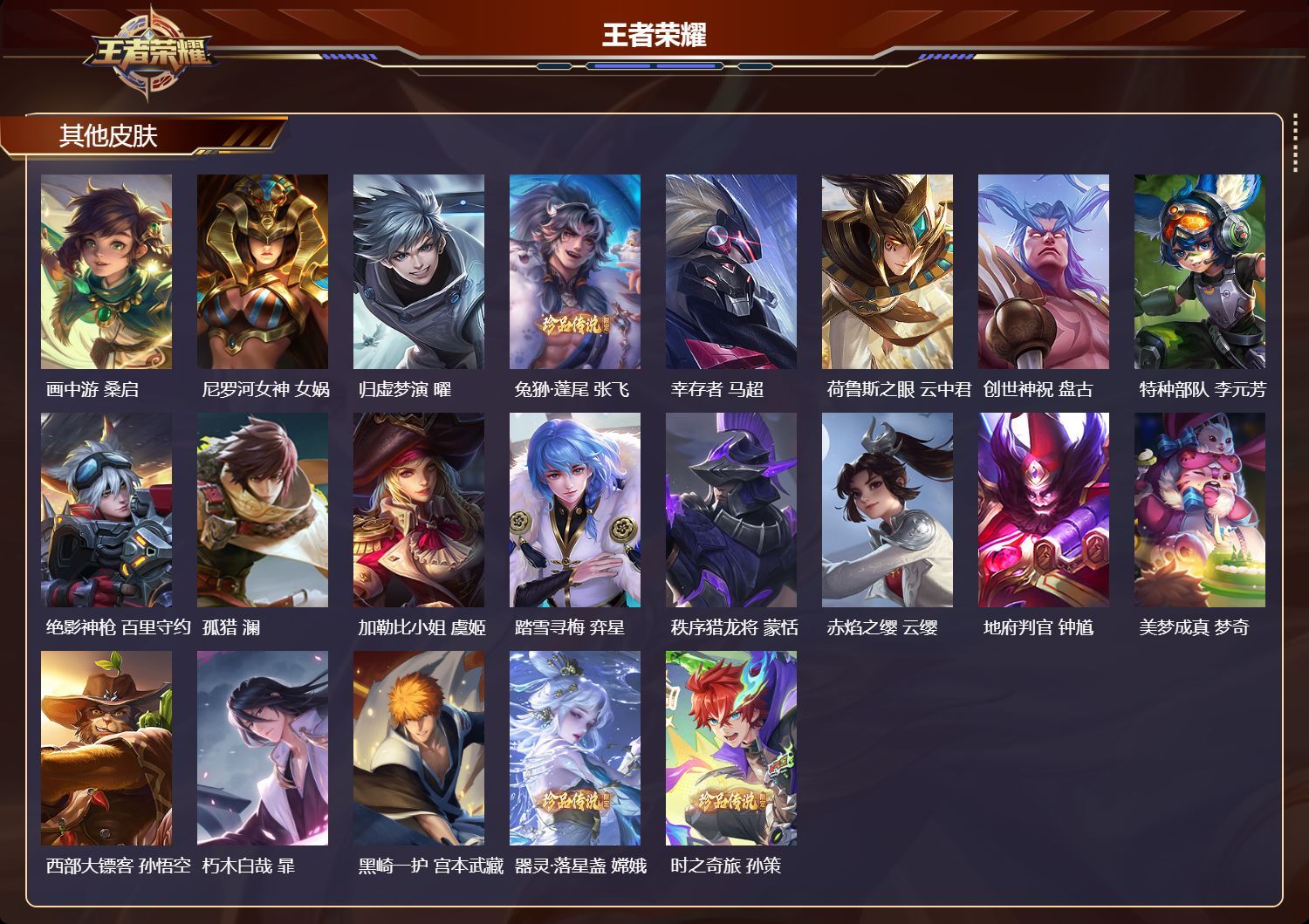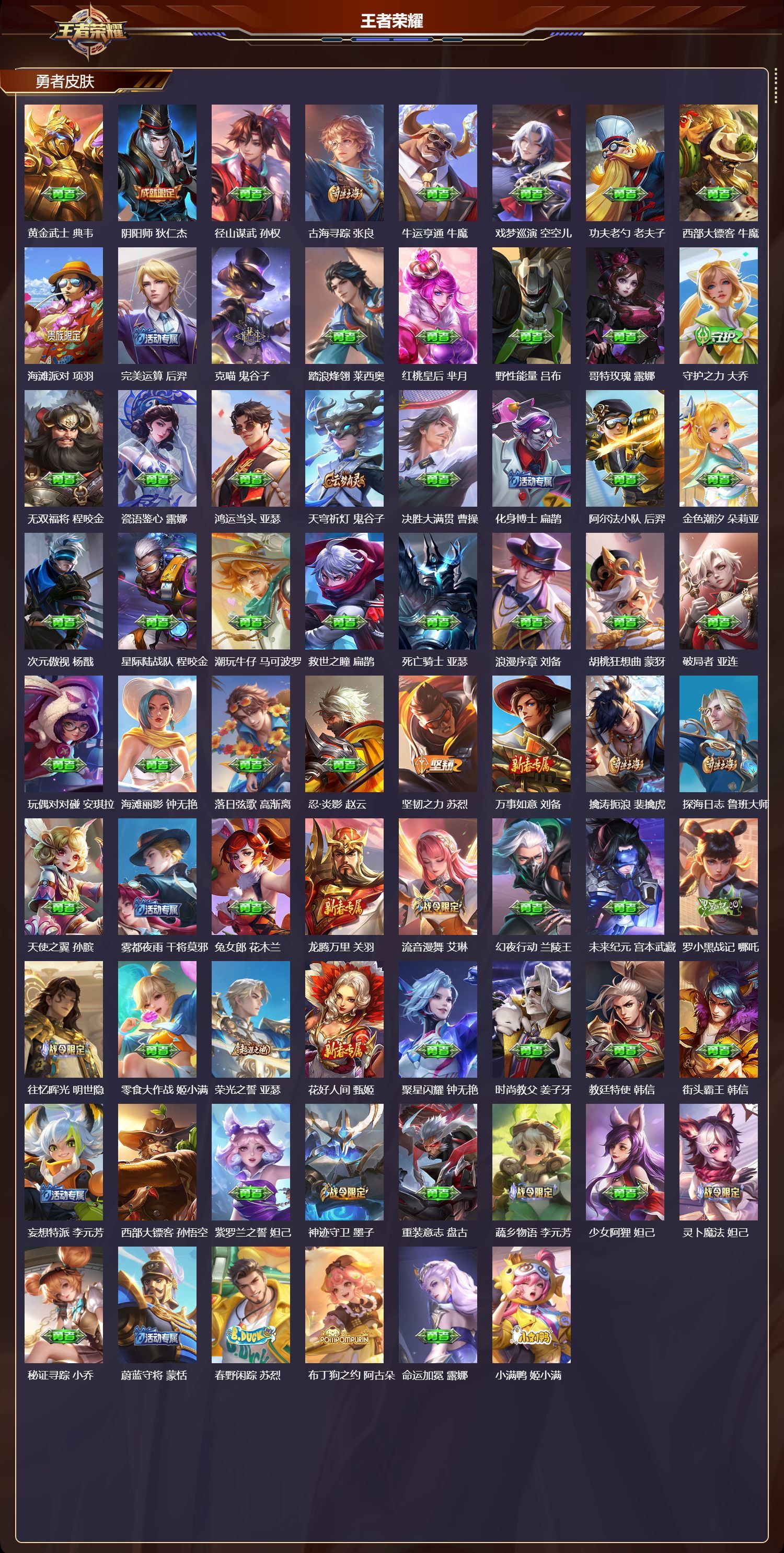 安卓QQ/无双王者/296皮肤/126英雄/3典藏/0珍品无双/2无双/5珍品传说/31传说/83史