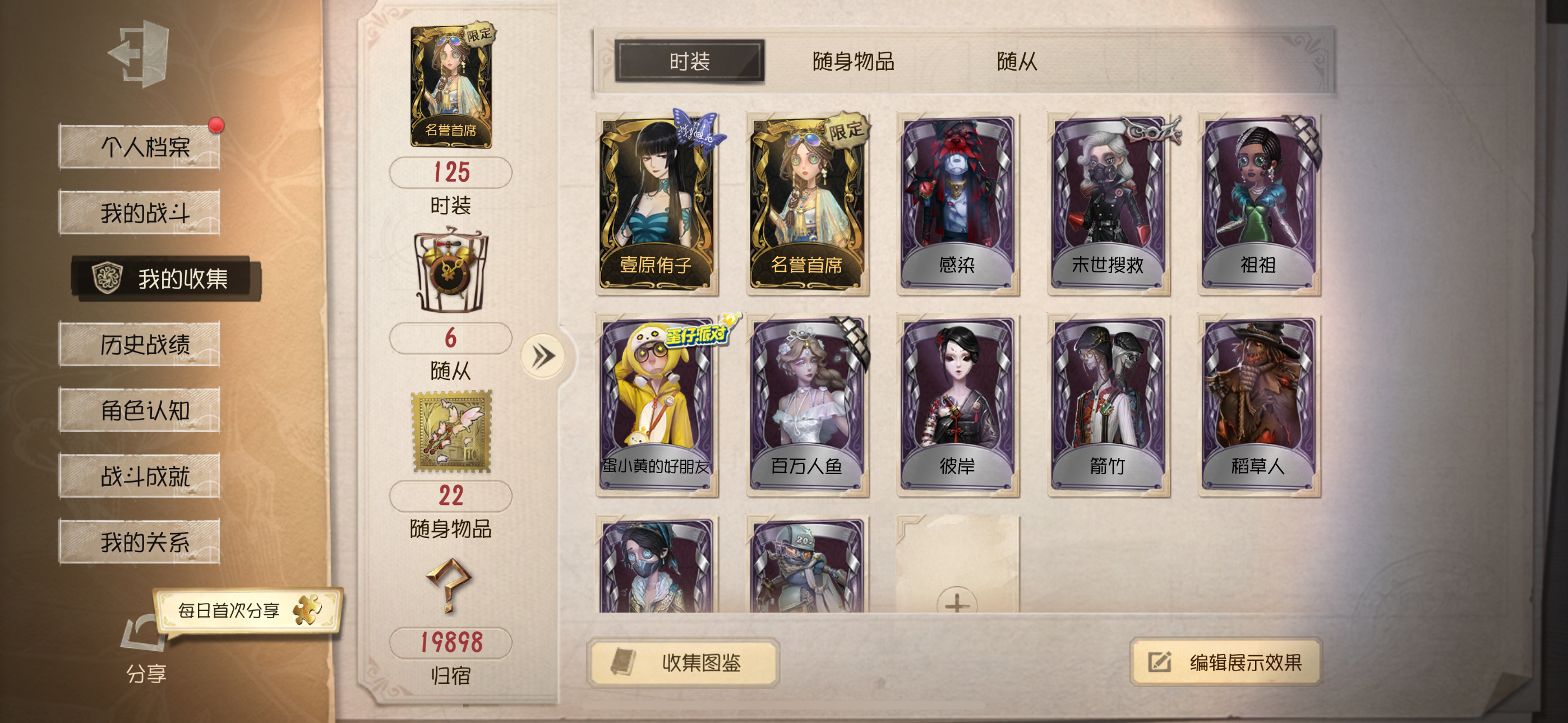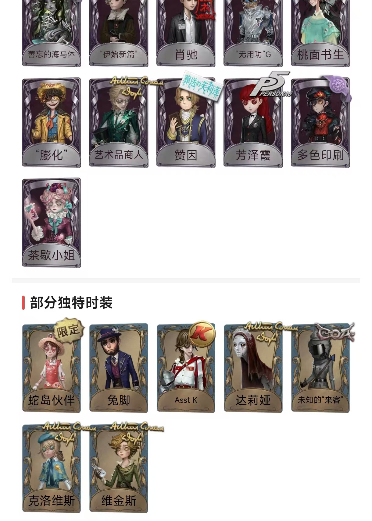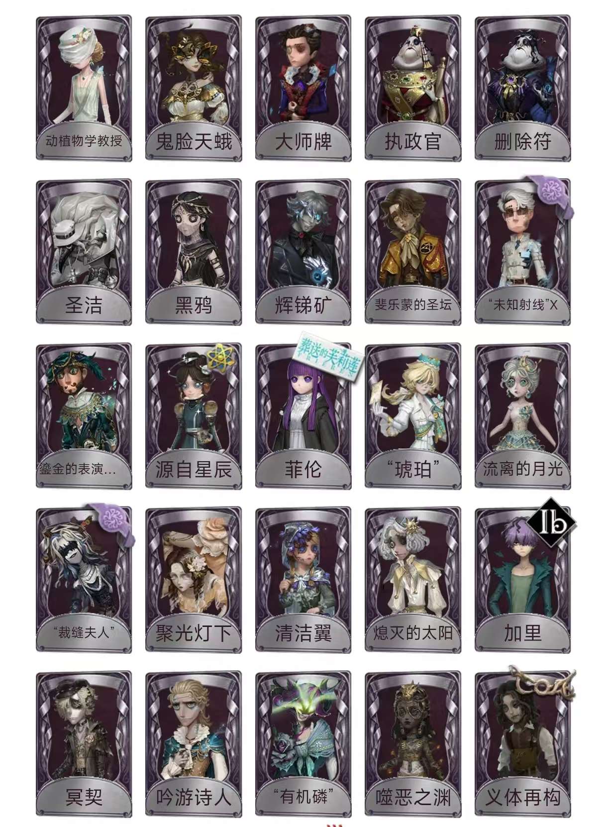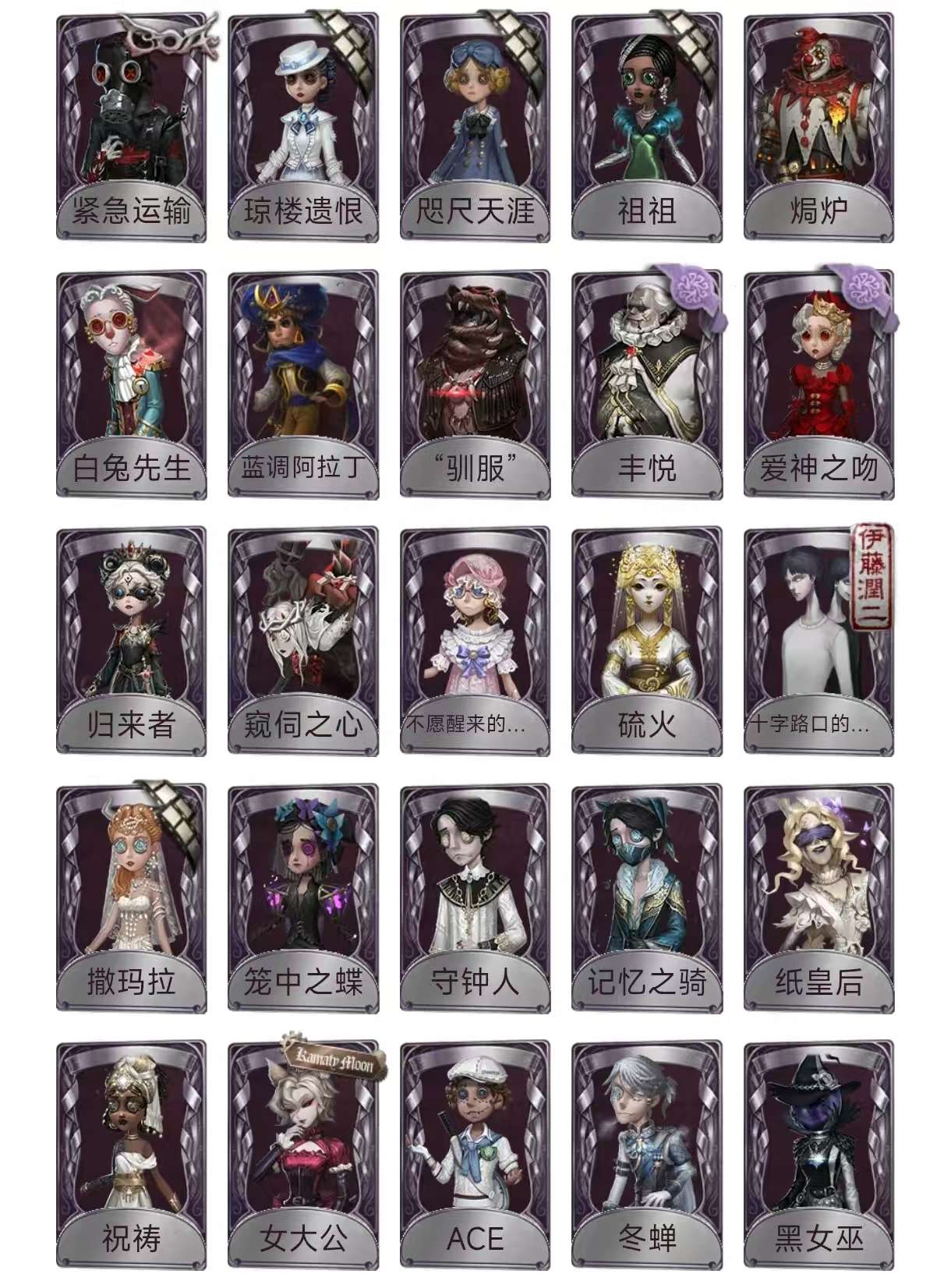 第五人格【安卓华为】扎克等多皮肤等21个金皮有两张紫皮卡6000紫薯