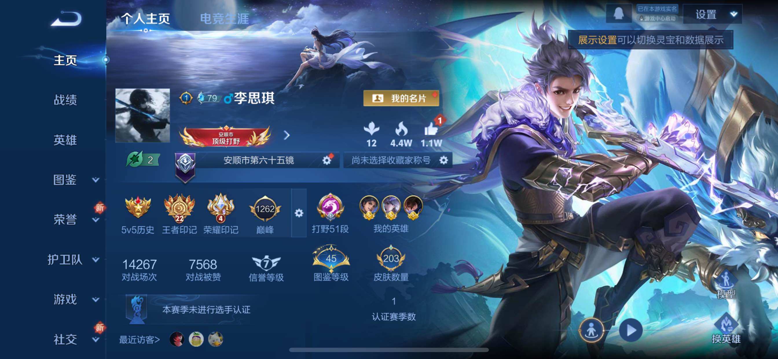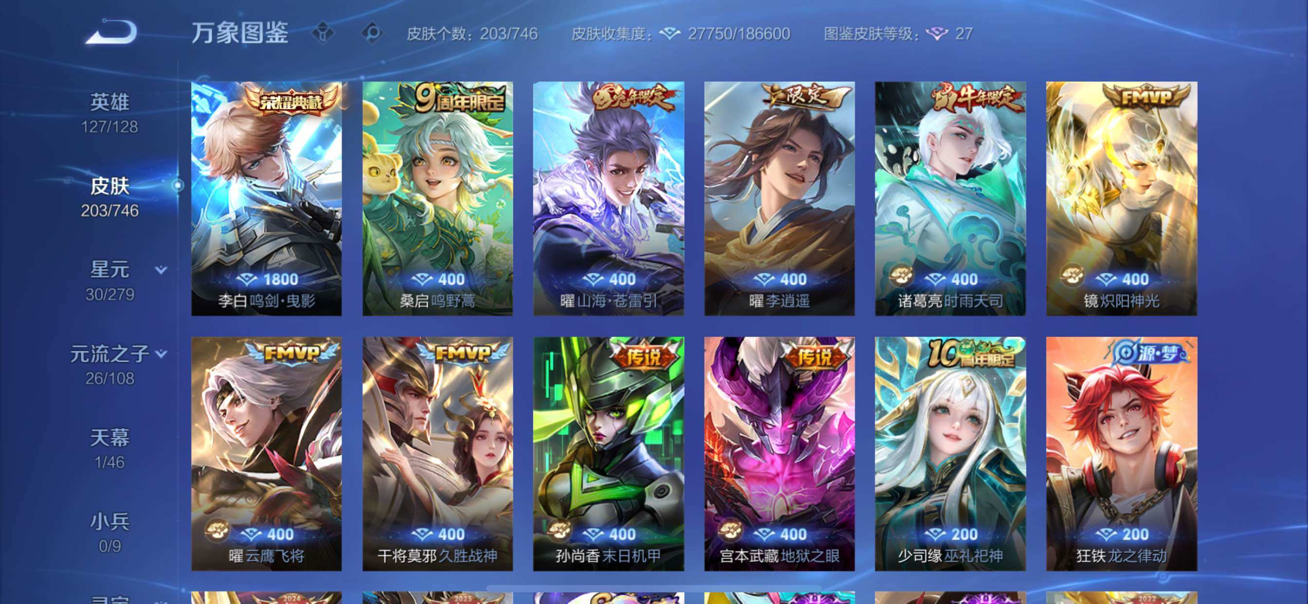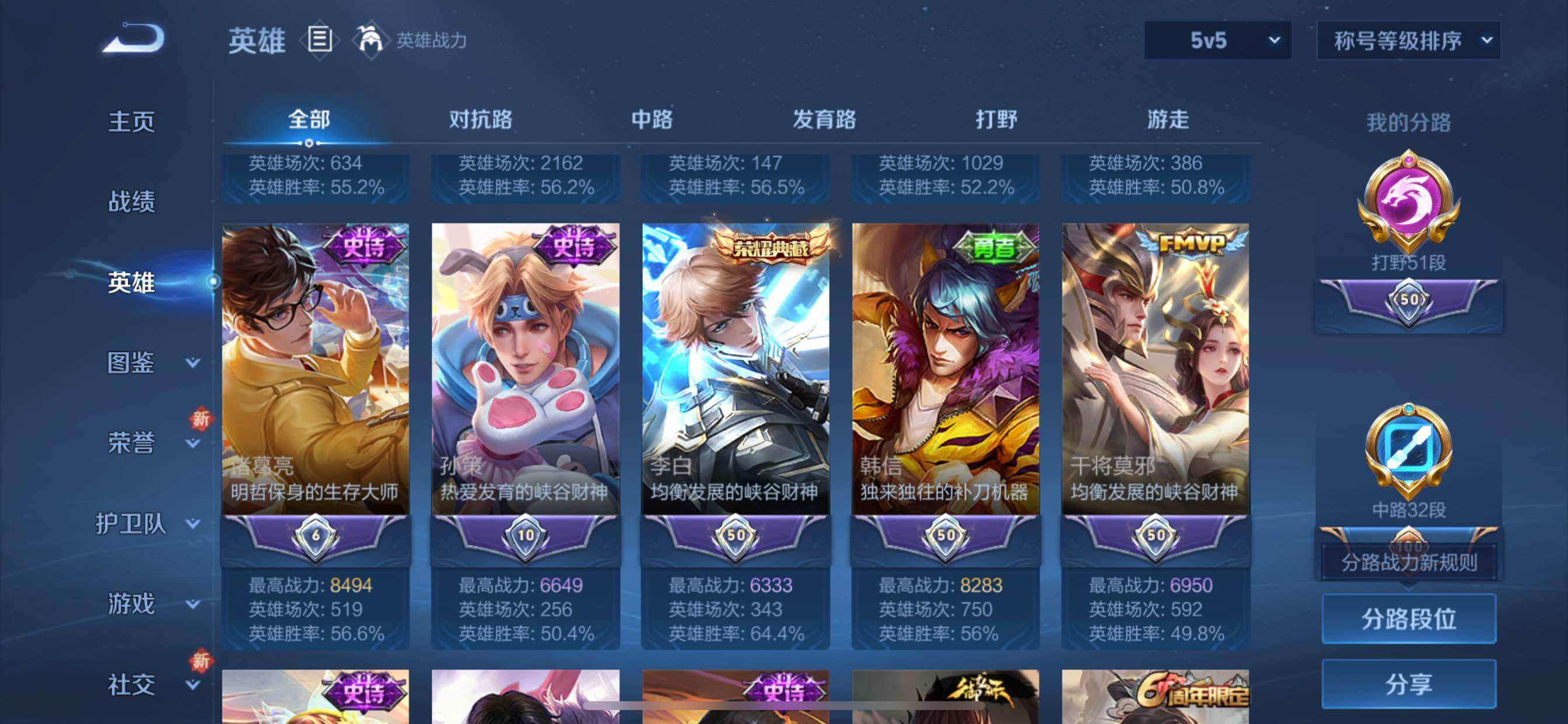 可换绑【打野51段 曜镜金标万战 苏烈关羽澜金标 李白典藏 李逍遥 傲雪梅枪