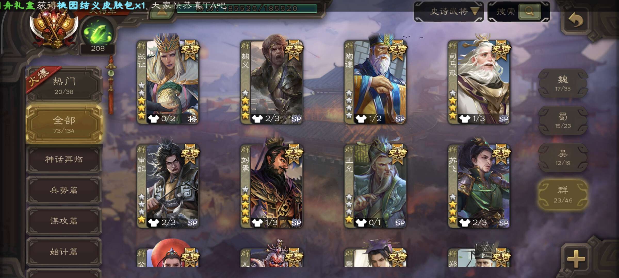 74 史诗武将刘焉友诸葛神郭嘉小鸟数学家