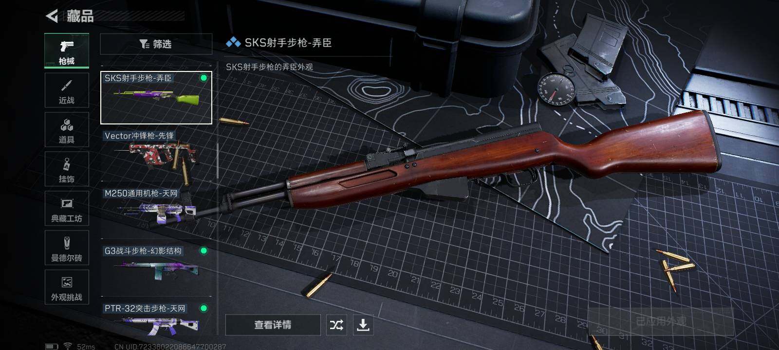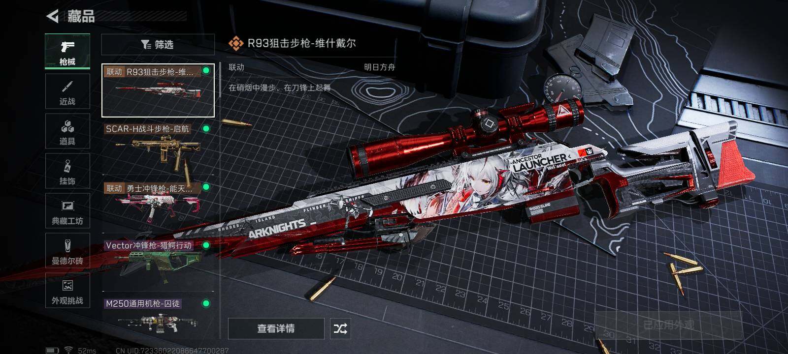 【传说级普通外观】:SCAR-H战斗步枪-启航,勇士冲锋枪-能天使-午夜邮差,R93狙击步枪-维什戴尔