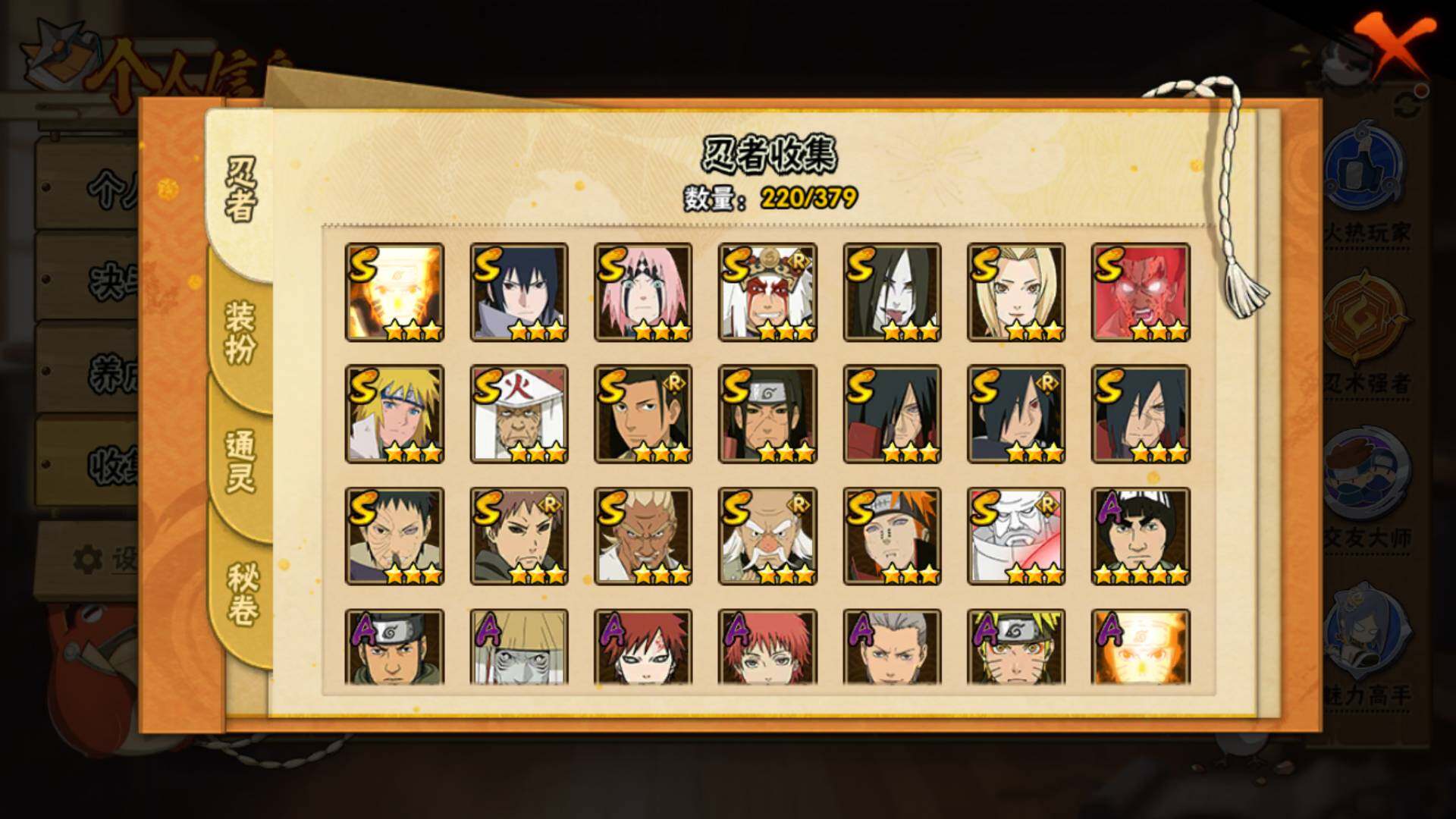 V11 1070W战力 20S忍 30A忍战力1074万 有熊猫 自来也56片 秽土鼬60片 止水80片 天道超81片 桃式80片 LL3944