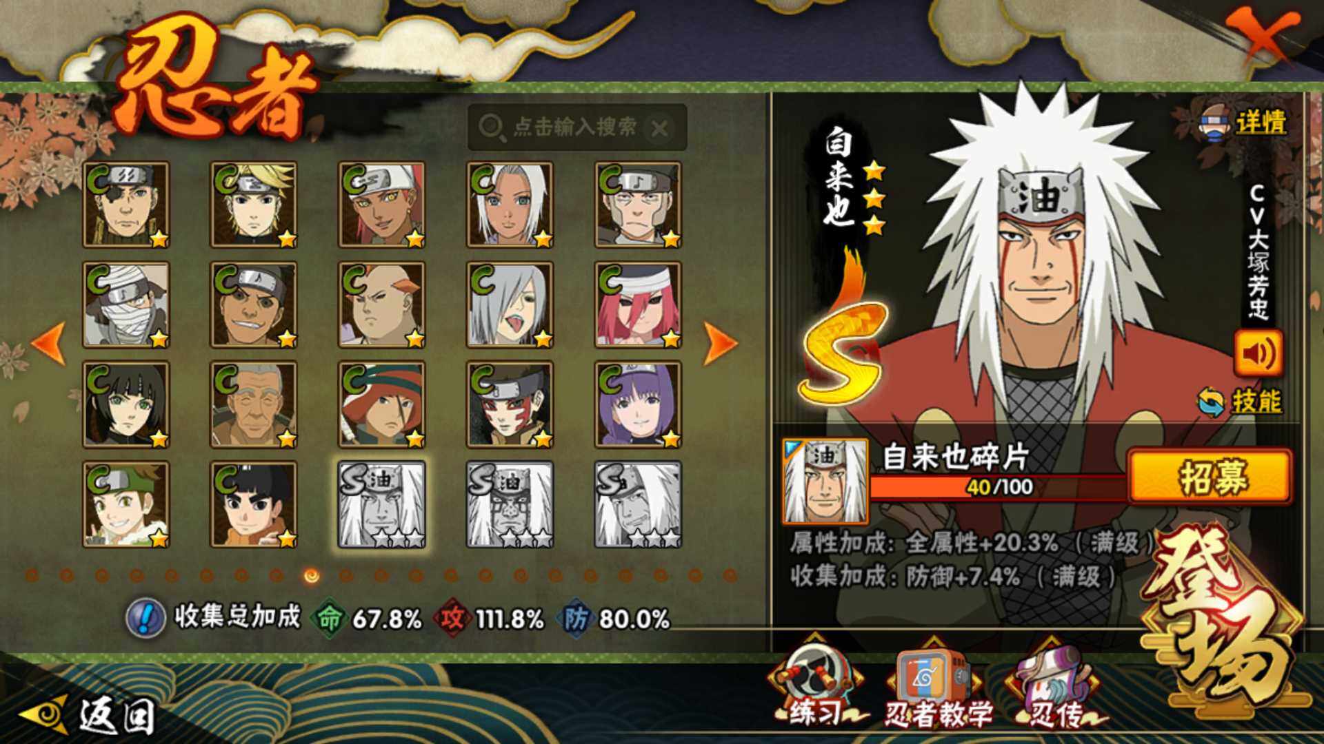 V9 900万战力 16S级忍者数-32A级忍者数 自来也40片 舍人84片