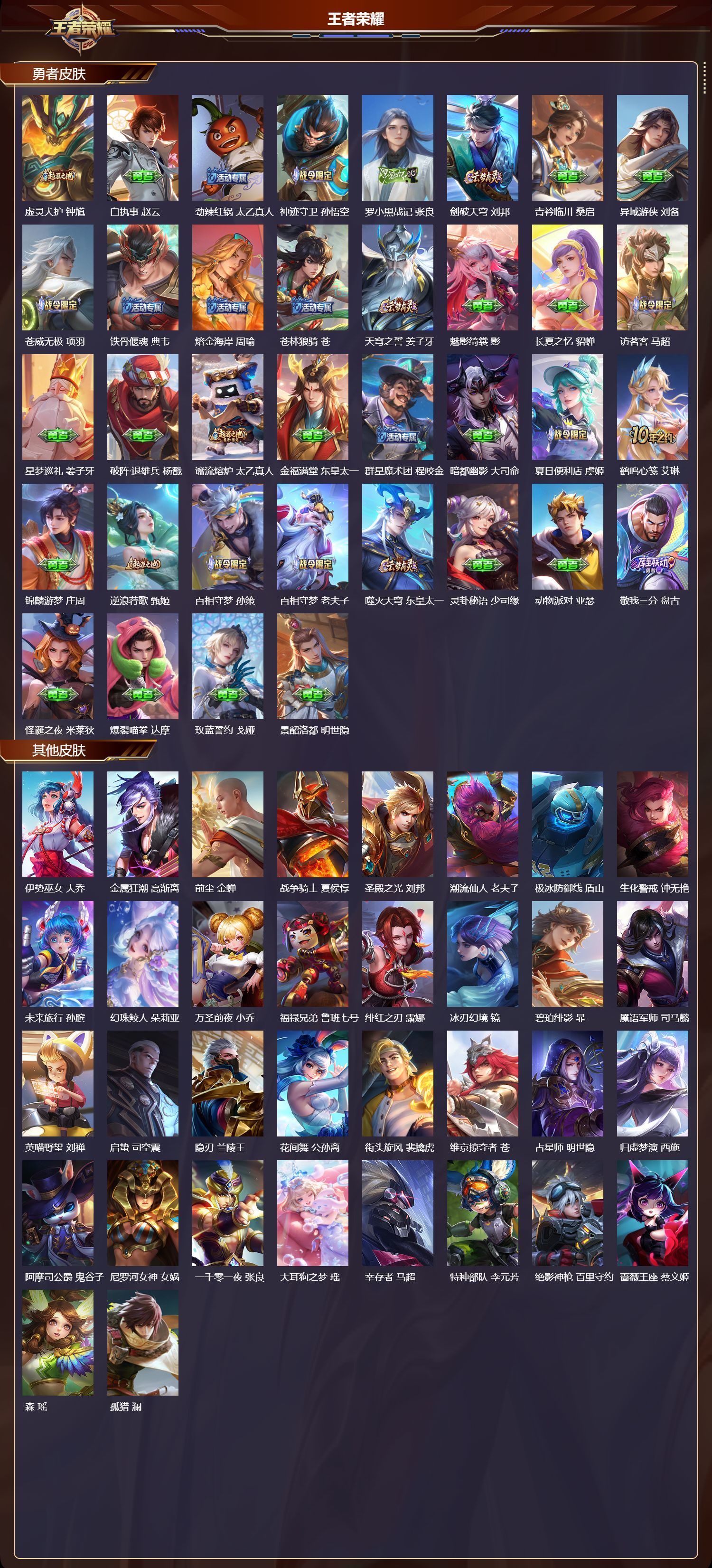 安卓QQ/荣耀王者/284皮肤/126英雄/2典藏/0珍品无双/1无双/4珍品传说/22传说/88史