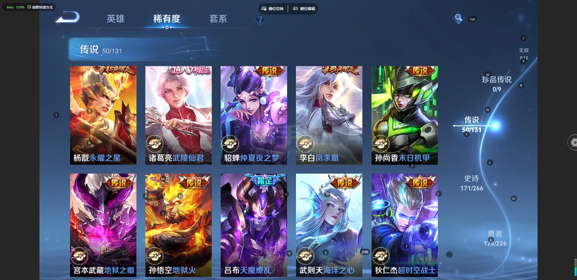 苹果QQ-10典藏-50传说-488皮肤-128英雄-无双王者-苹果QQ-贵族10-可二次-(有狮心王,梅西)488皮肤-9典藏-50传说-1星传说-1天幕-7按键