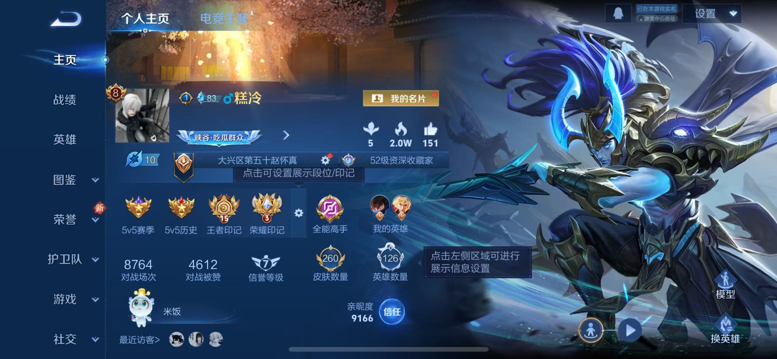 苹果QQ/非凡王者/260皮肤/126英雄/1典藏/0珍品无双/1无双/4珍品传说/24传说/59史