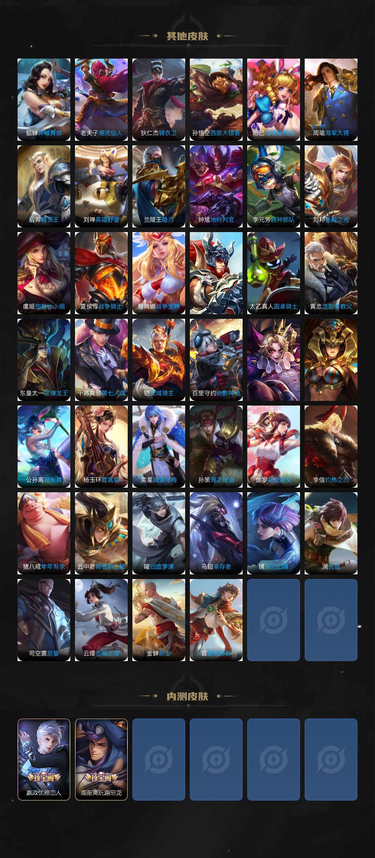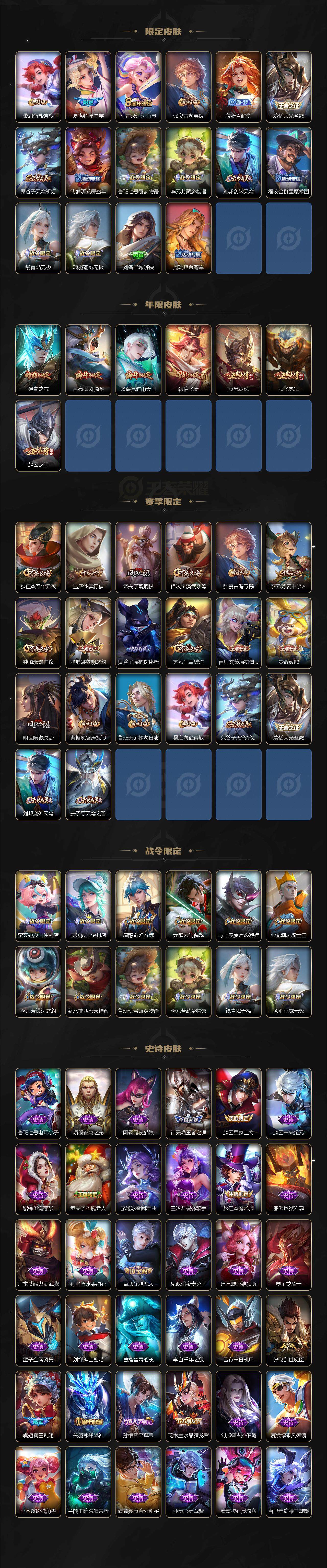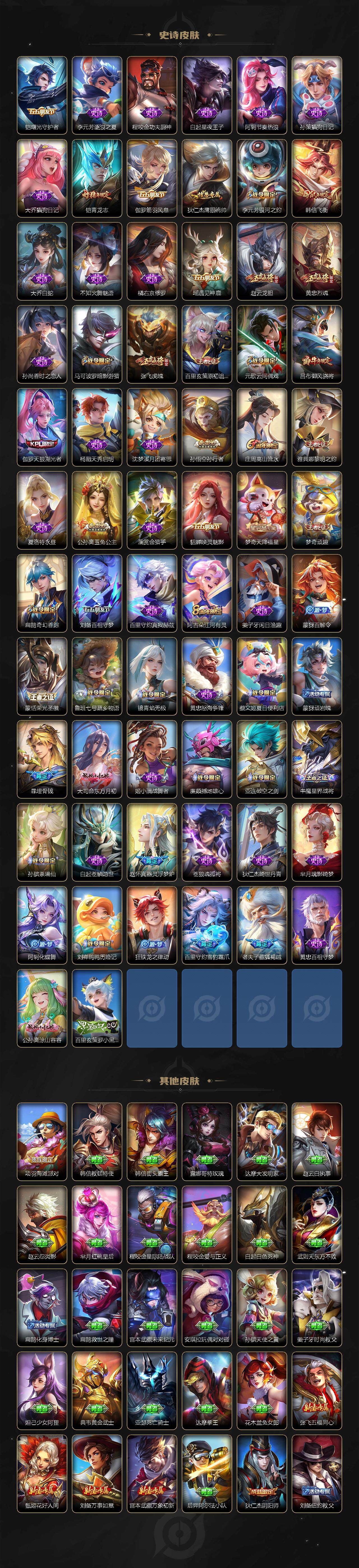 【传说皮肤】:后羿神树通天,公孙离云诺千山,妲己愿照众生和,虞姬愿照岁时盈,云缨幻