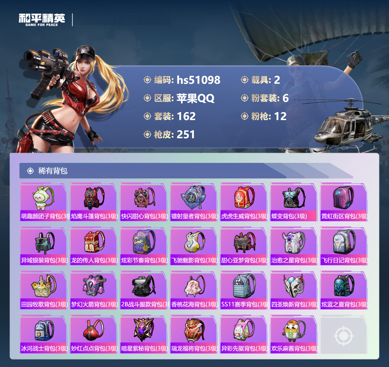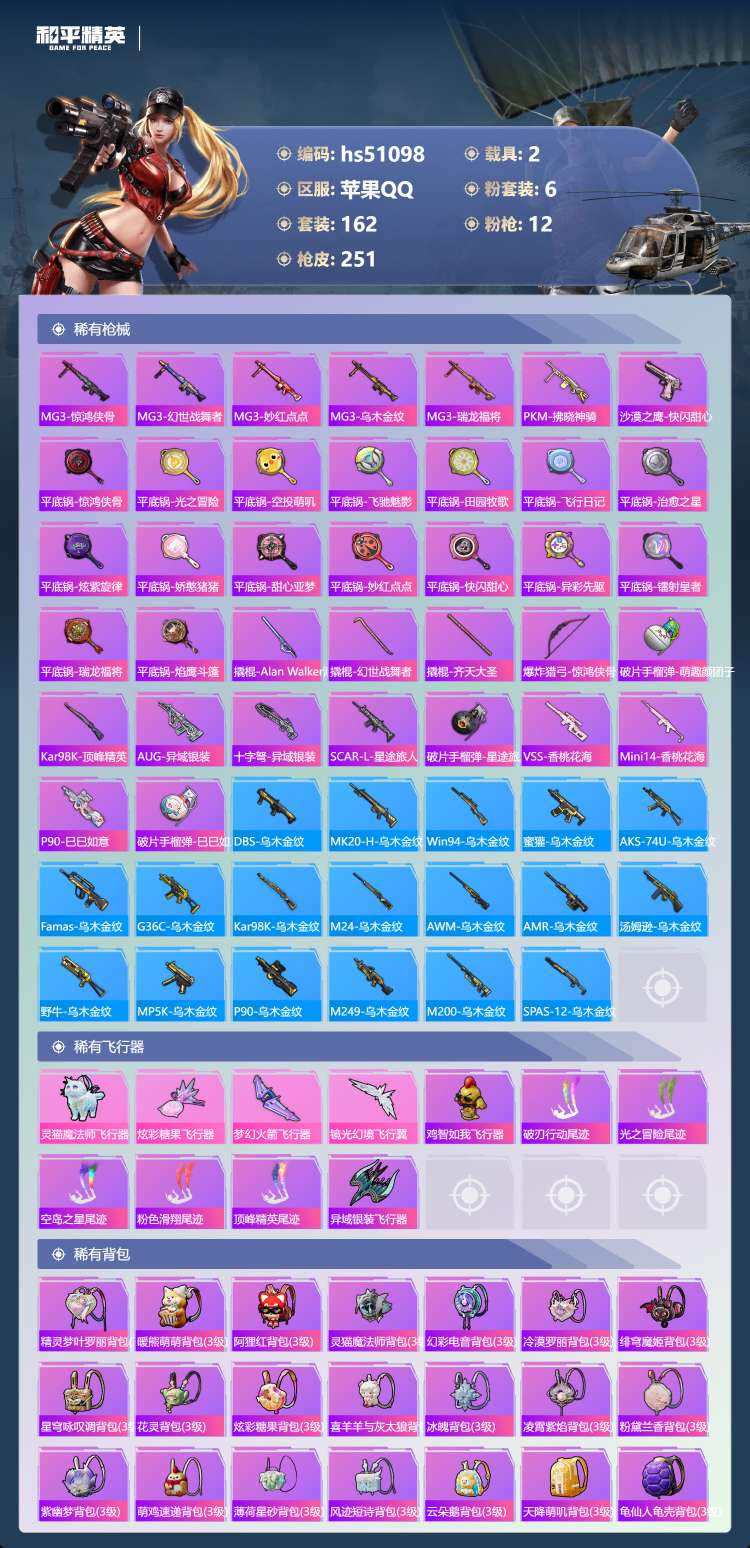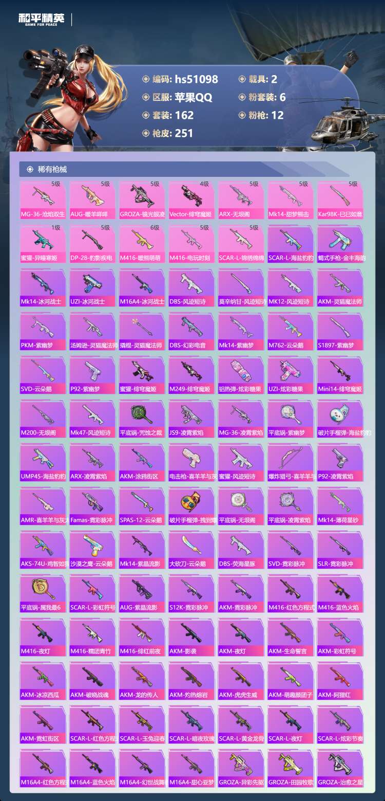 hs51098 苹果手Q-17王牌印记-6粉装-12特效枪-2载具-81457热力值-162套装-2