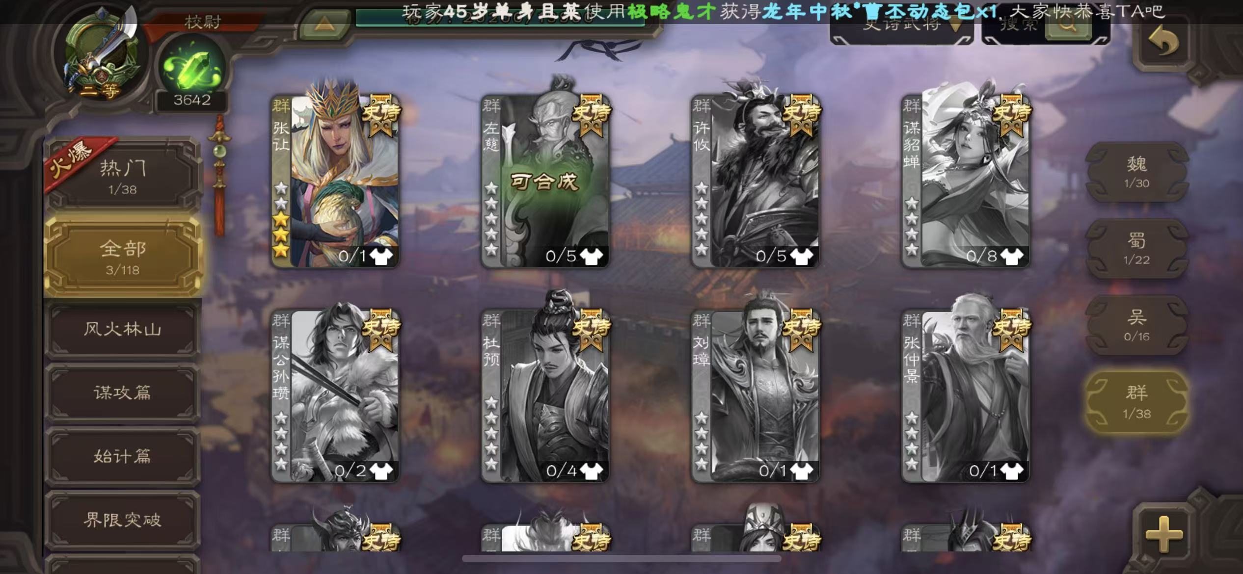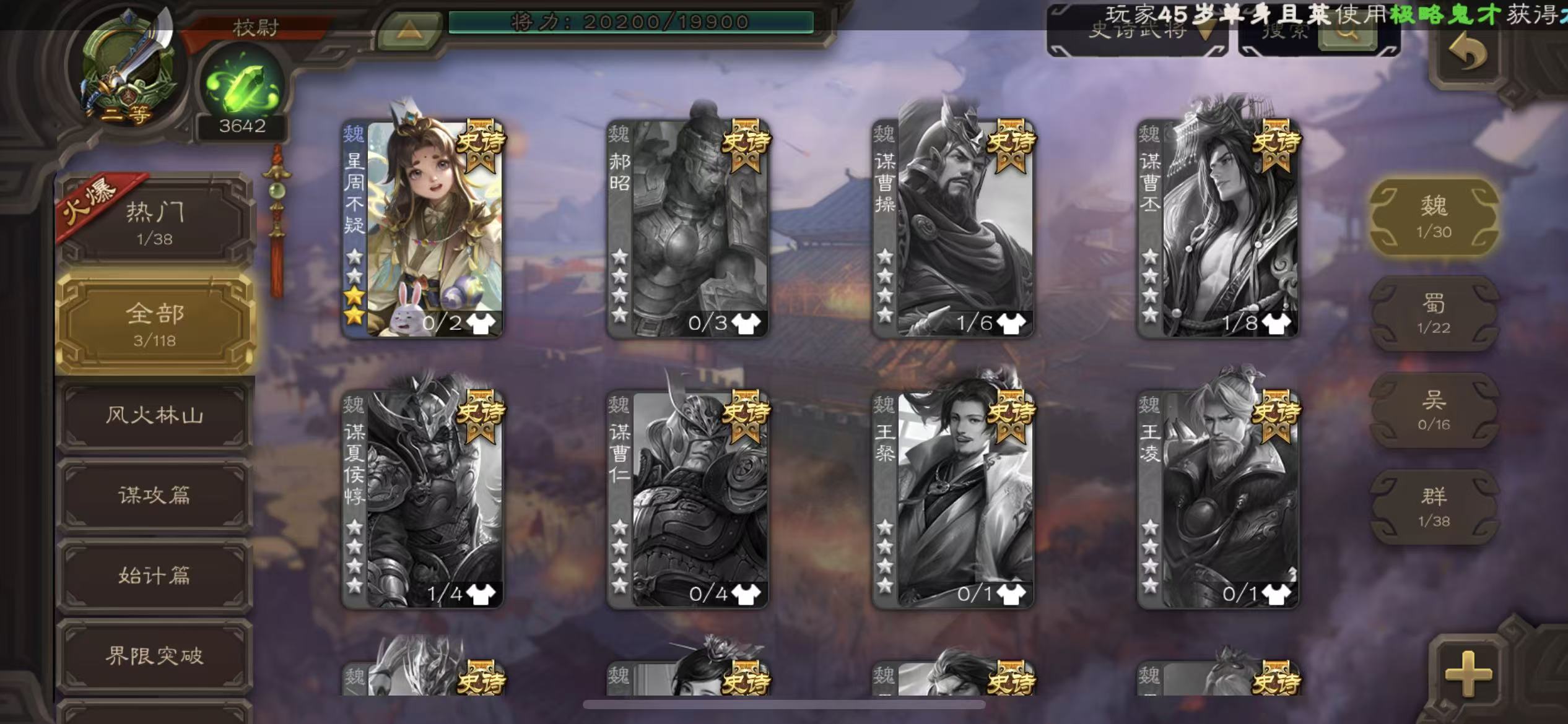 史诗武将数量: