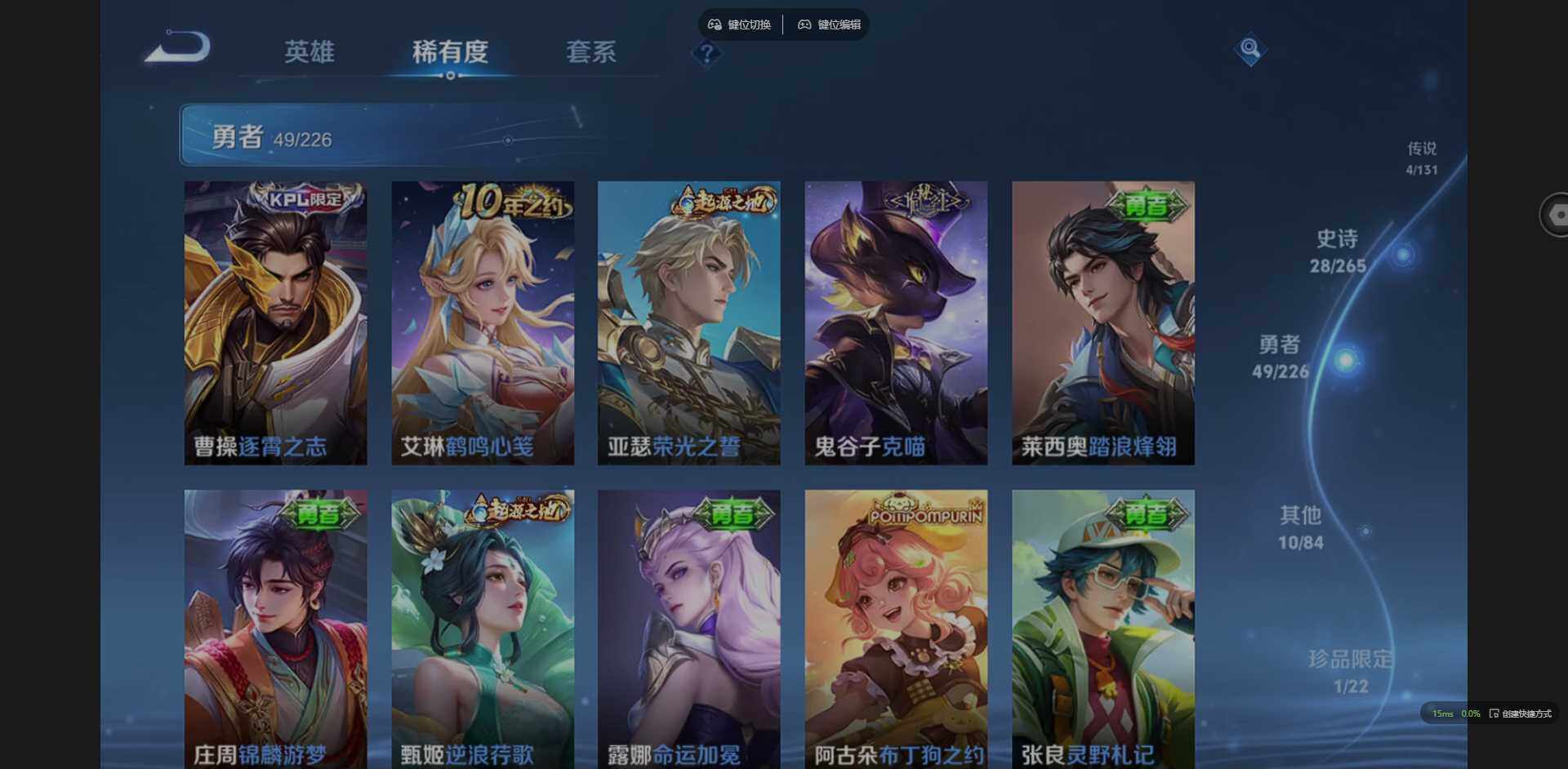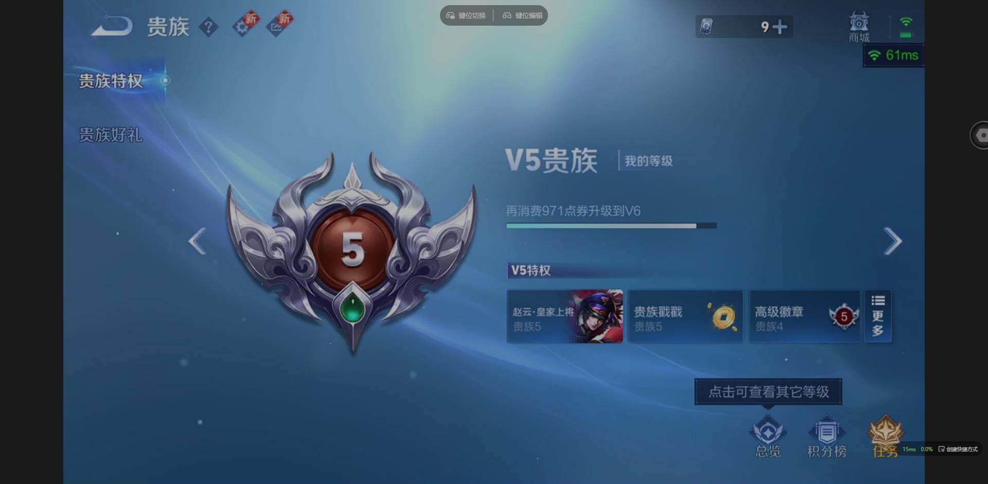 贵族等级: V5 英雄数: 111 皮肤数: 93 荣耀水晶: 银白咏叹调 珍