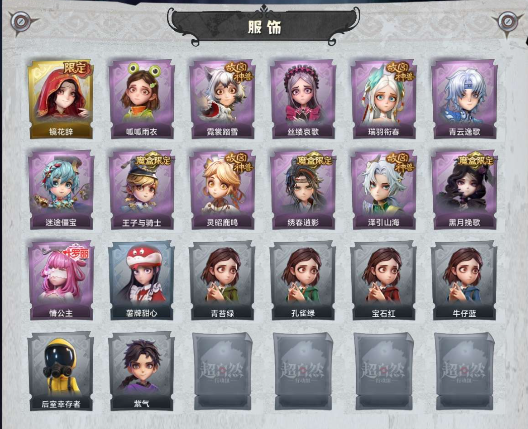 1金12紫?镜花辞?泽引山海?情公主?迷途僵尸?青云逸歌?瑞羽衔春?霓裳踏雪?灵昭鹿鸣?黑风挽歌