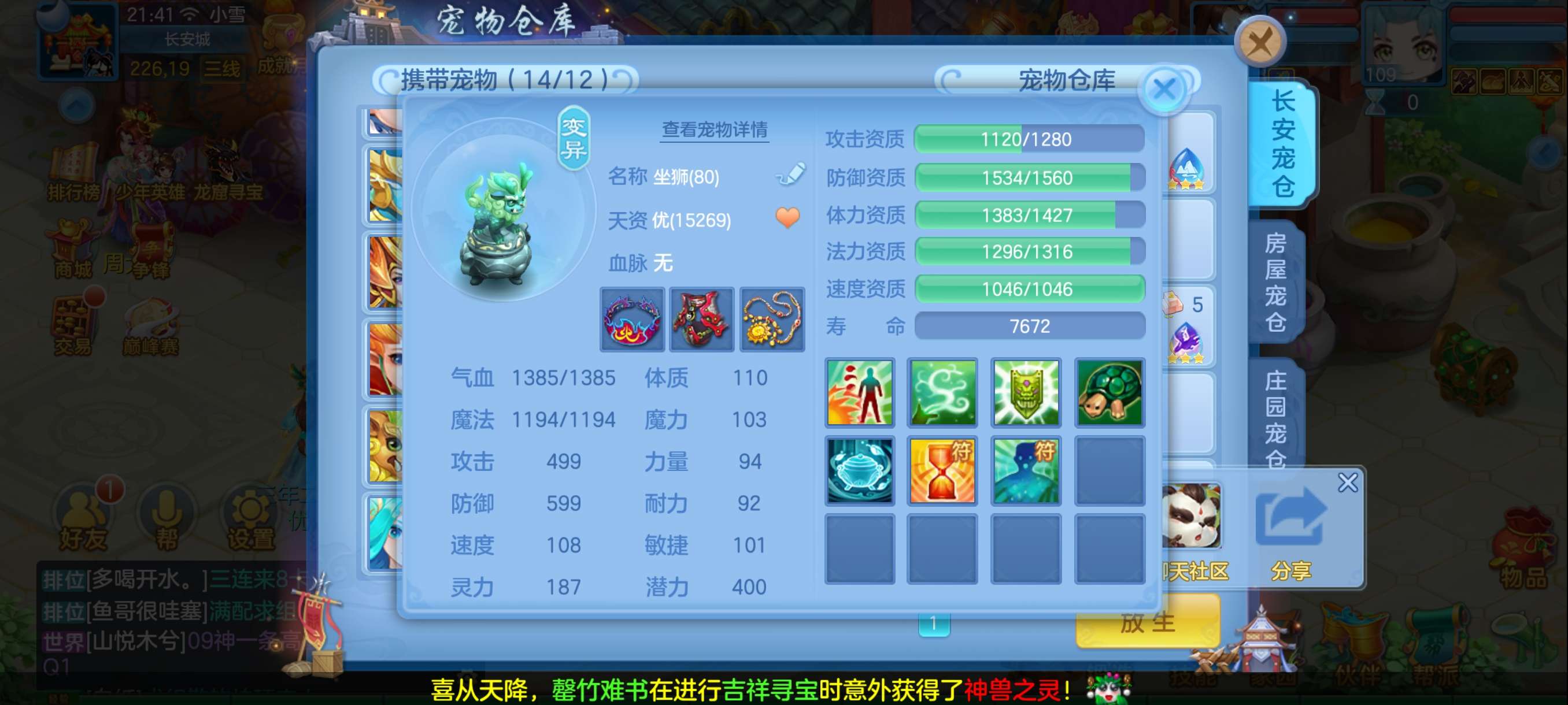 幻唐志:逍遥外传(神武4)【安卓官方】13段 三内胆神 冰晶庄园 全单加易龙宫 4高坐骑 各种特殊宝宝。一年换可关联可改密。配合一切售后