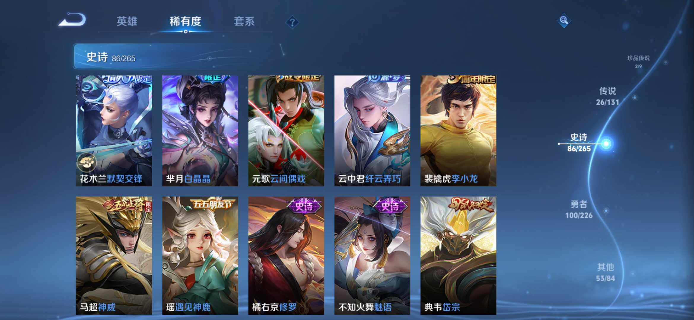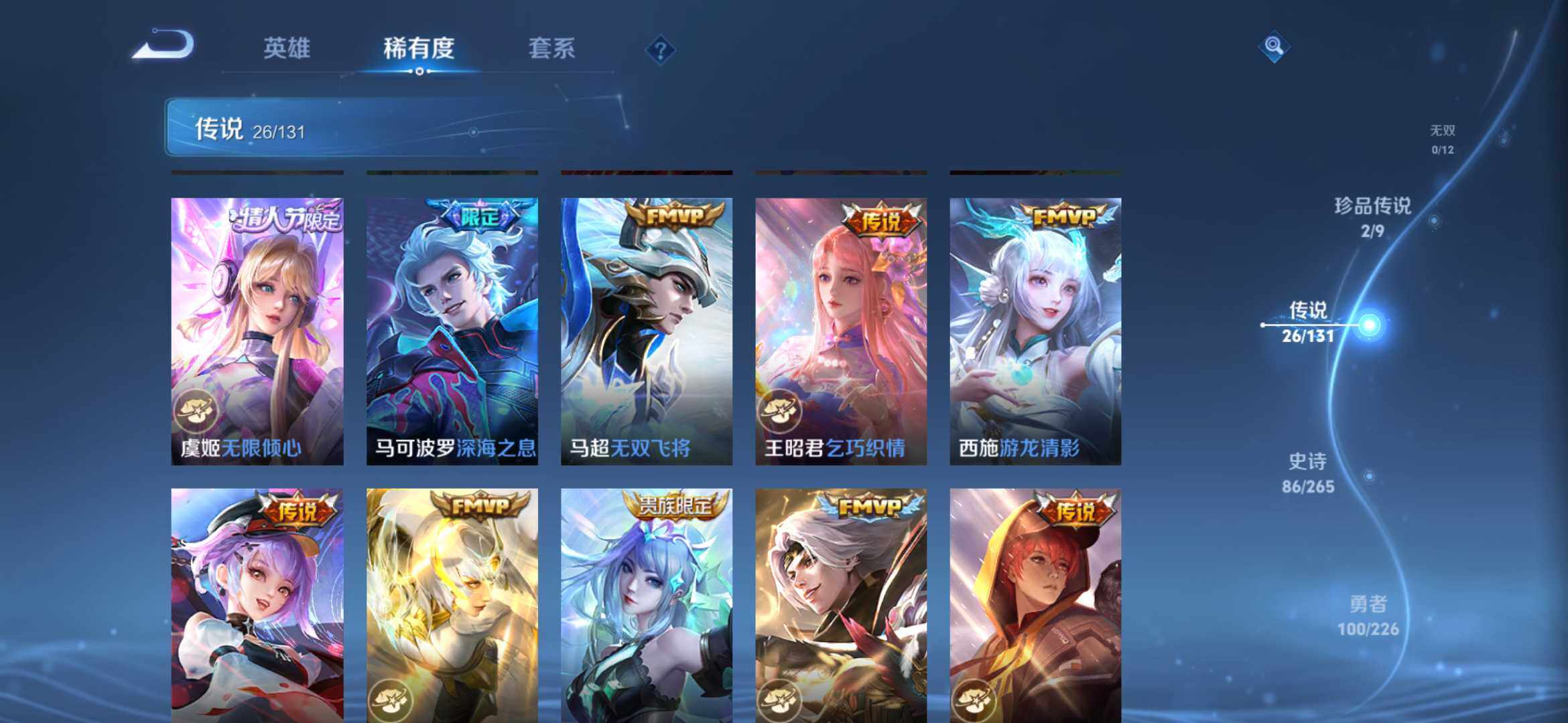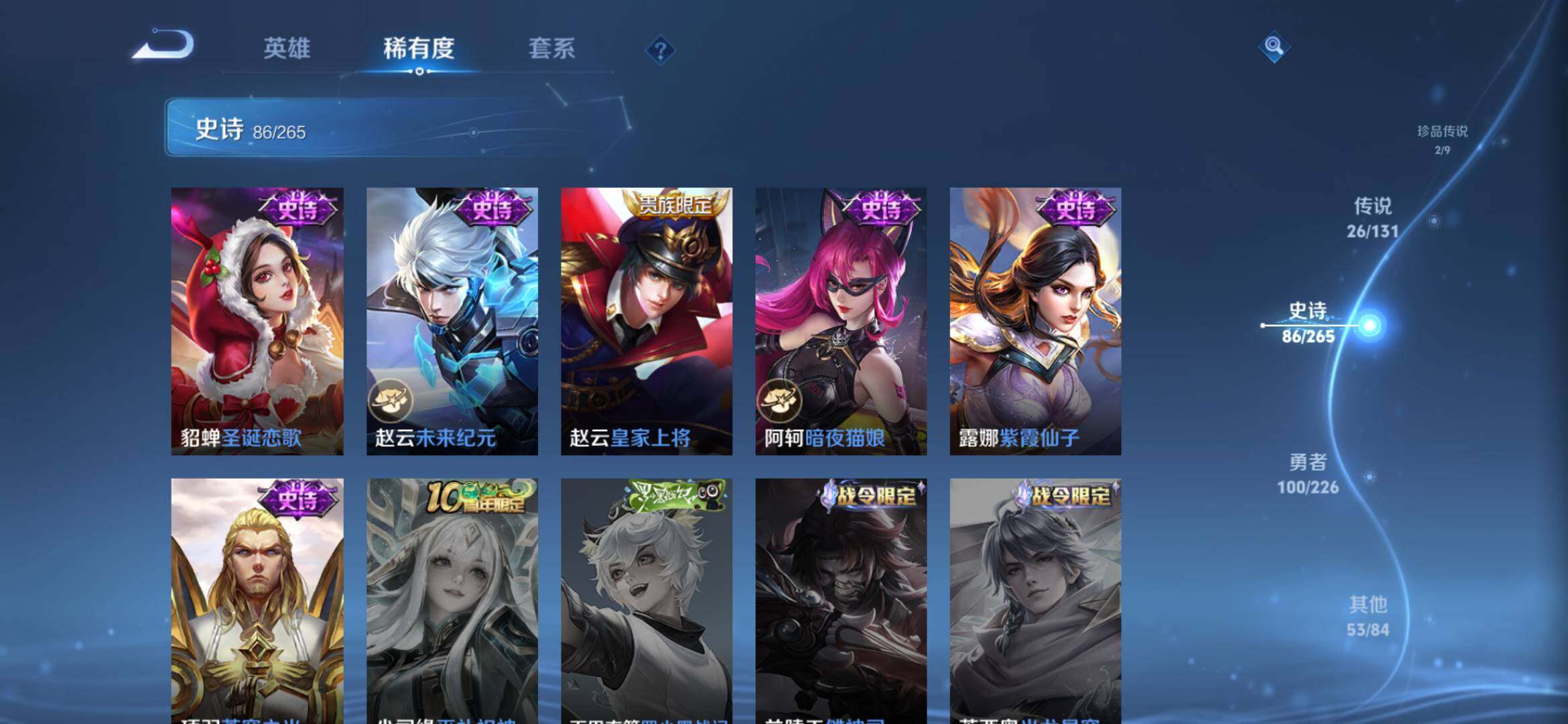 【268批1典藏26传说1天幕鸣剑曳影 怪盗基德 愿照千秋盛 愿照山河定 落雪白狼 琥珀纪元 电玩雷克斯 游龙清影 财神纳福天幕】安卓Q-V8-最强王者段位-126英雄-268皮肤-1典藏皮肤-2珍品传说-26传说-86史诗