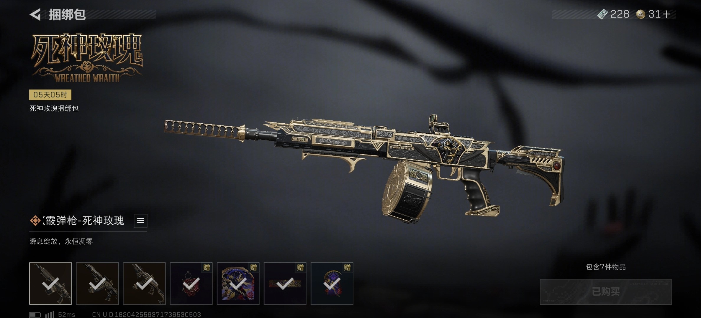 死神玫瑰一套+m7皮肤+2千万现金+手册