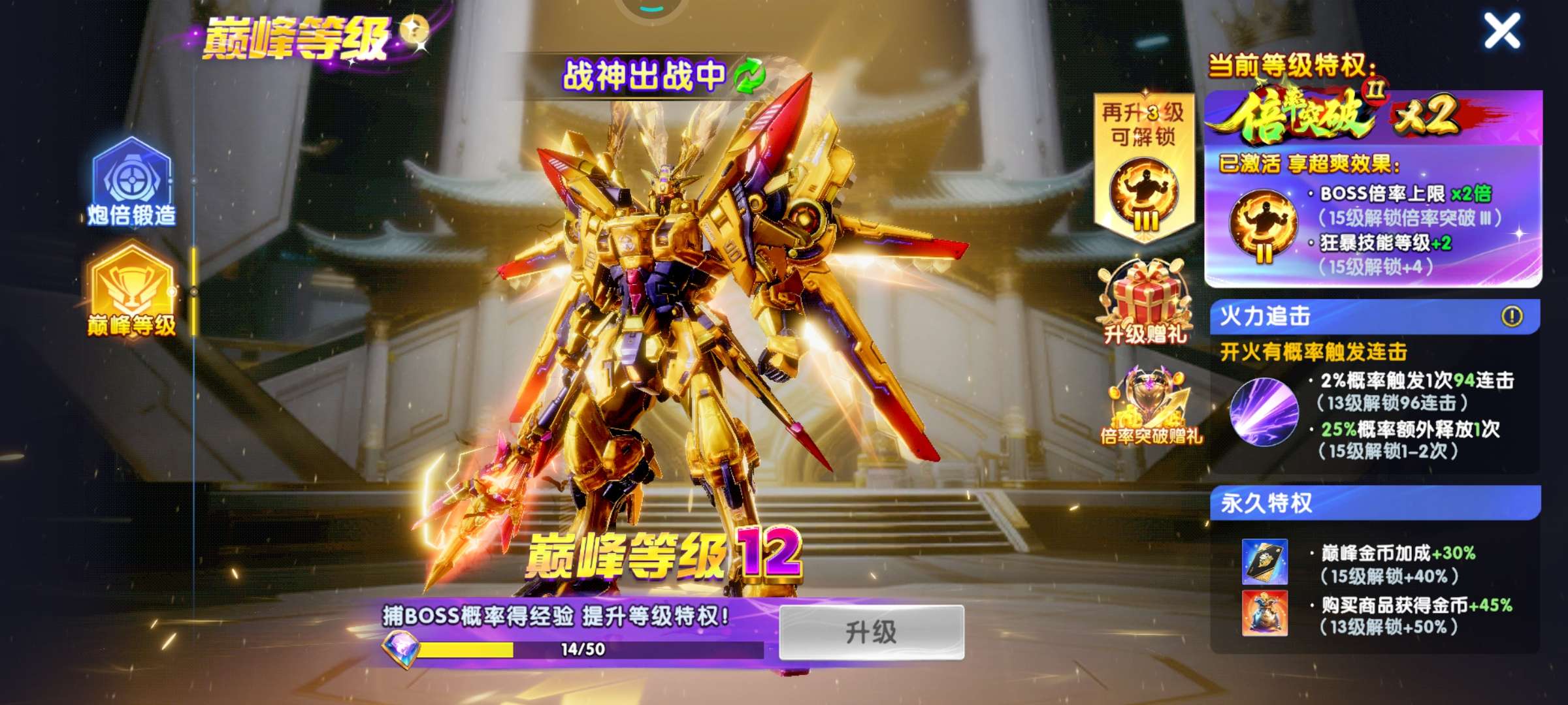 328万亿 50炮 带滋炮台 巅峰12级 加速翅膀4天 5级狂1天 狂暴2830 核弹26 激光6
