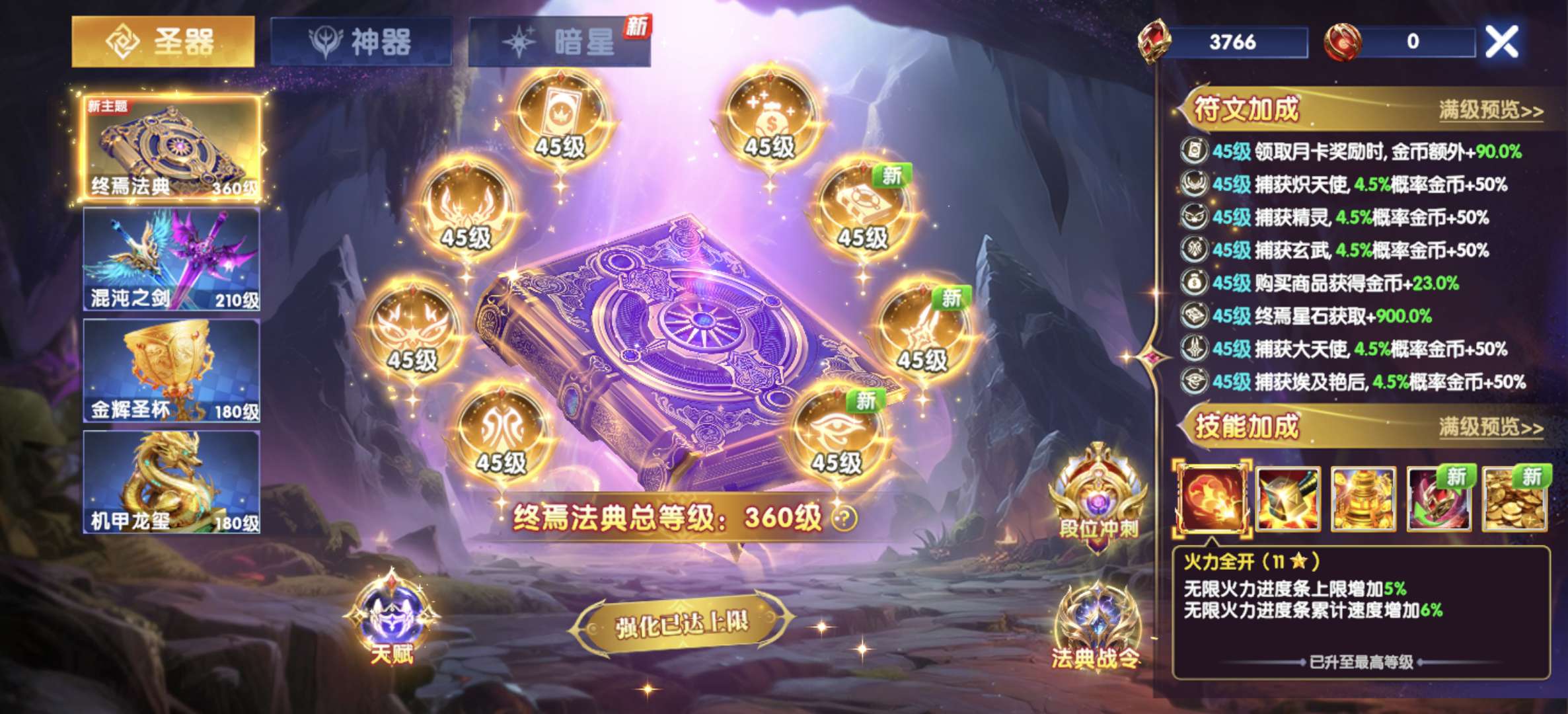 V16,1790加成,高爆,机甲9套,冥斗士满级,天使惩戒4级,雅典娜组合6级,满倍炮,满巅峰等级。