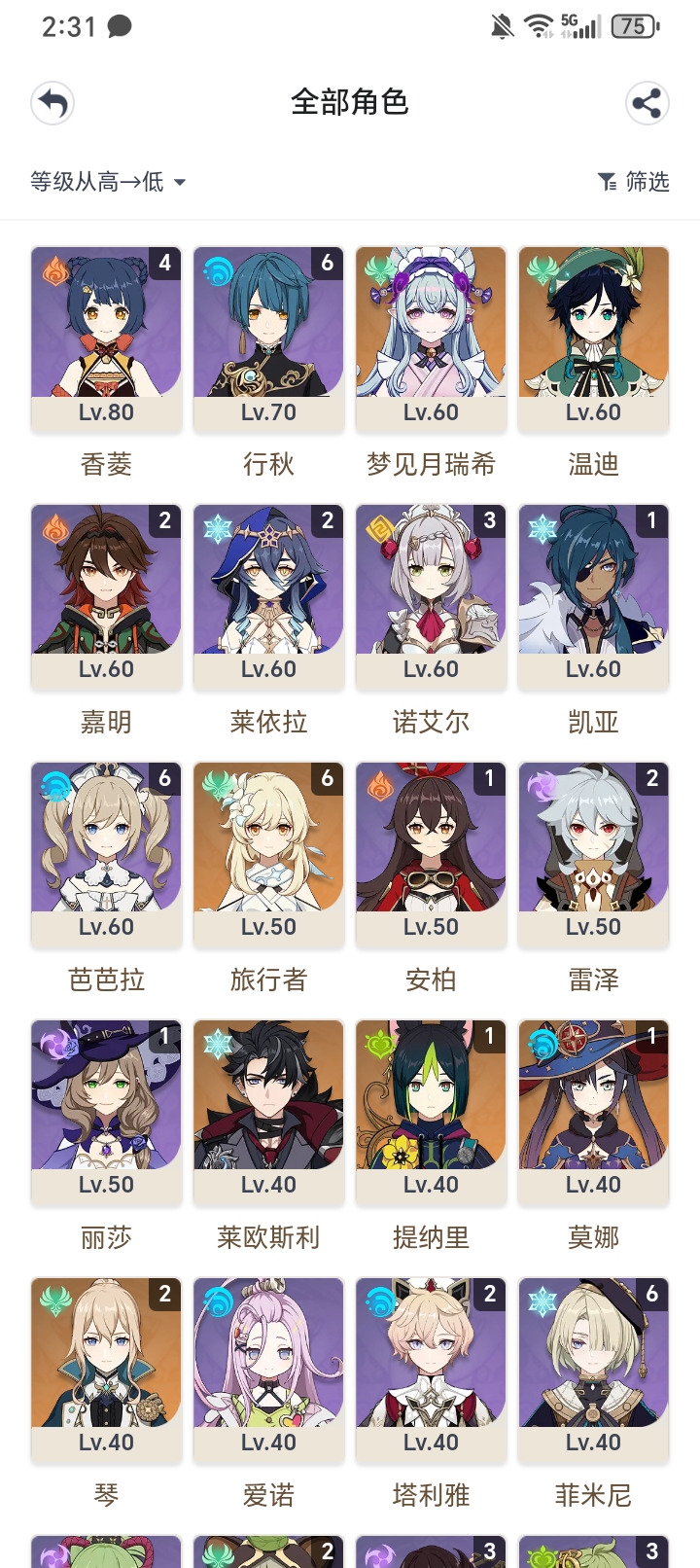 流浪者胡桃夜兰0+1。纳塔开始探索有点低,账号比较欧。