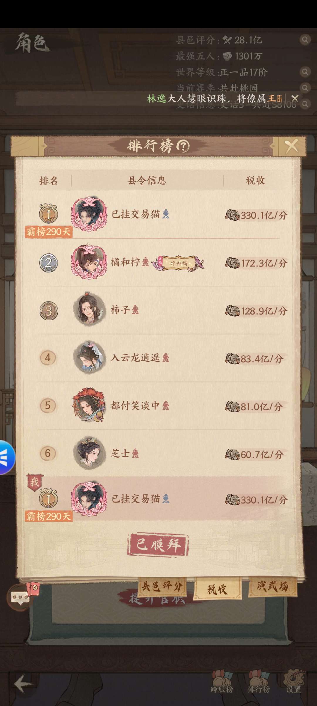 官服史话3,1300万,一车46亿,有魏征,李一桐,宁姚,氪了10个,没时间玩了,便宜处理。