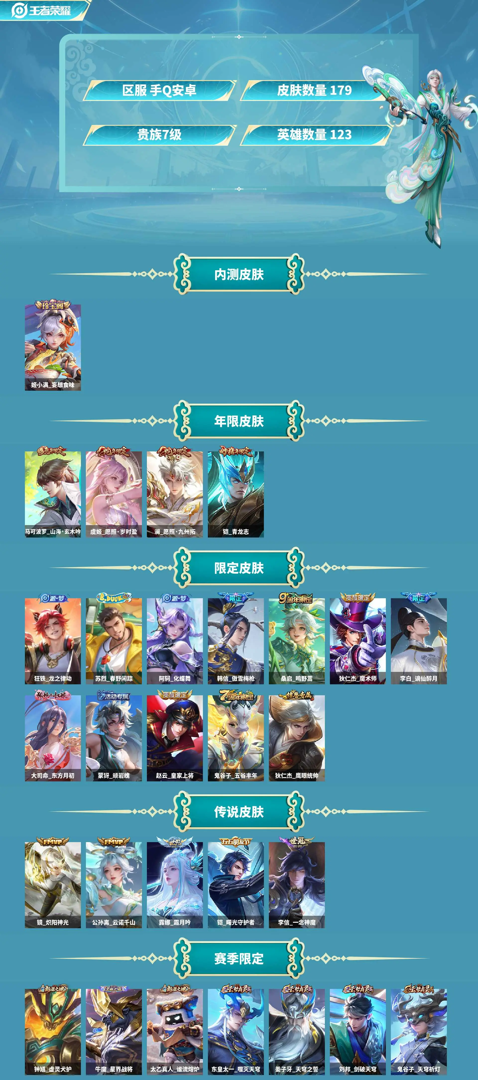 极品特价号皮肤数179典藏皮肤数0无双皮肤数0传说皮肤数7珍