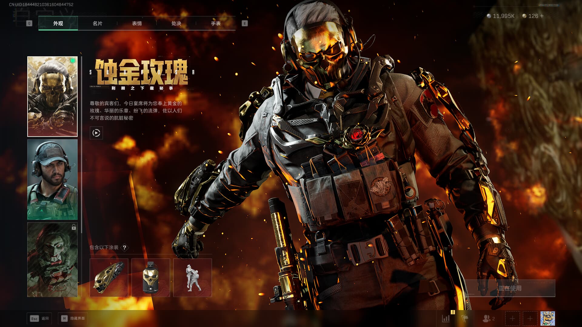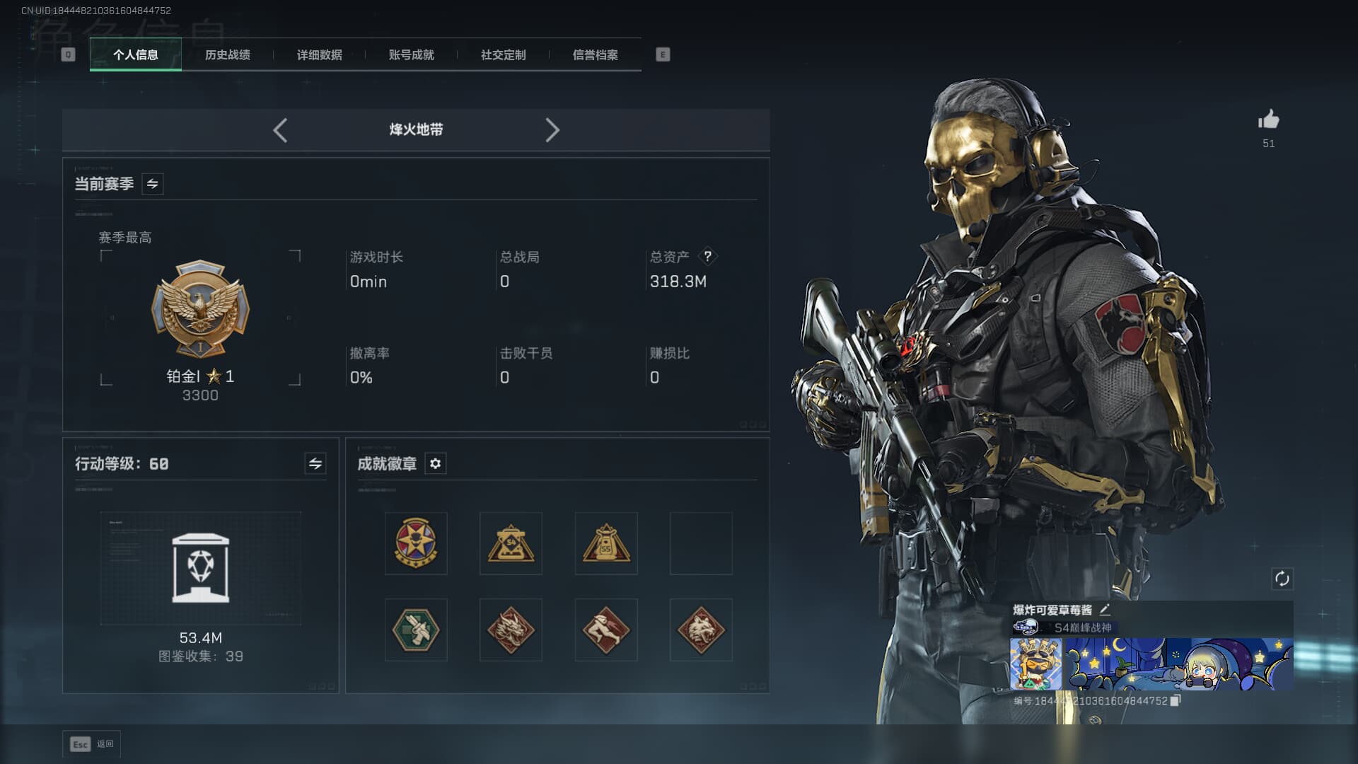 c8593/QQ区/总资产318M/哈夫币1100W/仓库十级+体力七级/【干员皮肤:红狼-蚀金玫瑰
