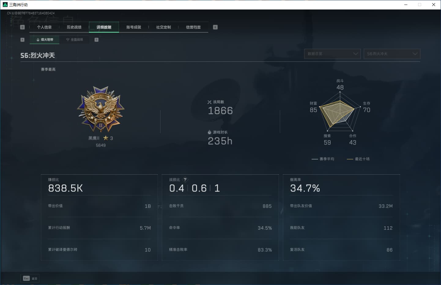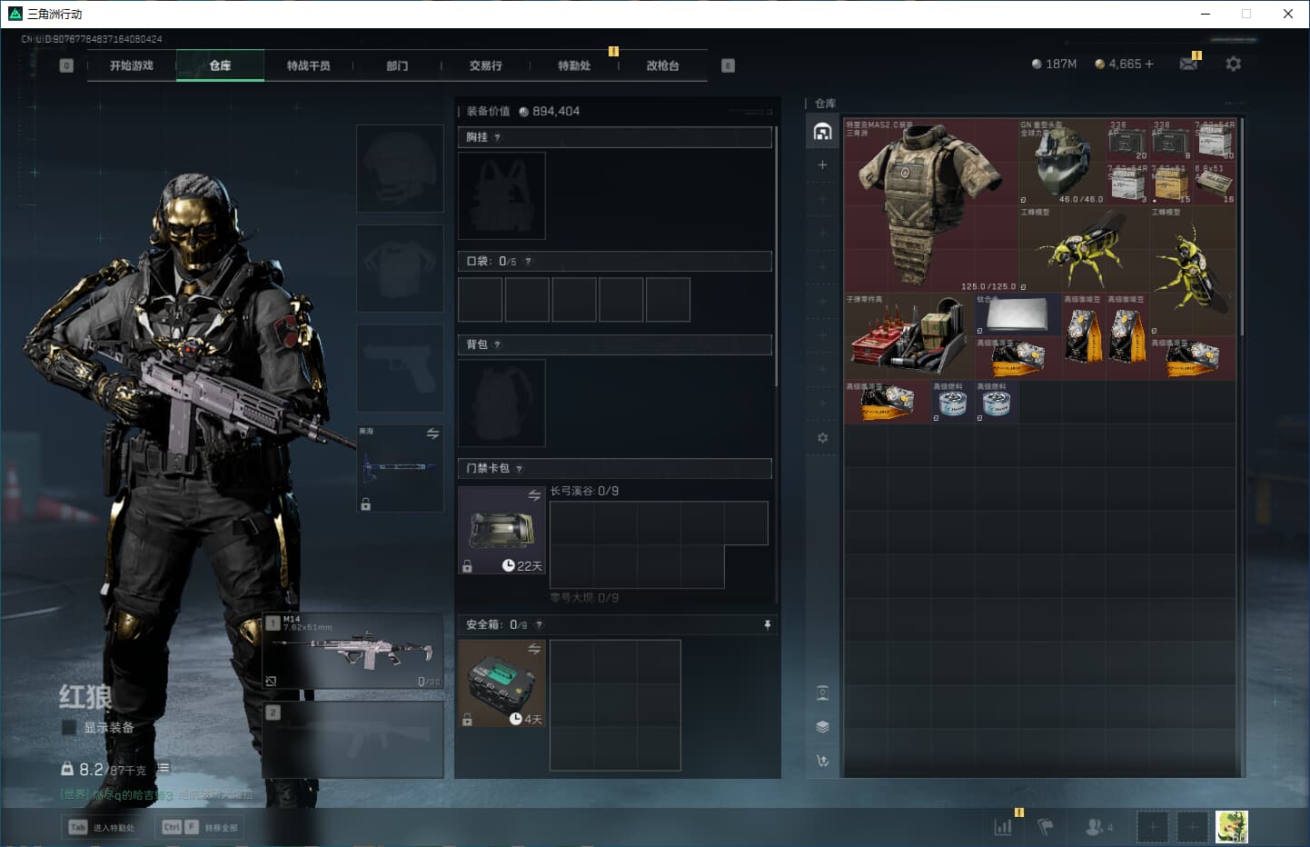 c8387/QQ区/253M总资产/187M哈夫币/特勤处9677/S6赛季3*3/【干员皮肤:红狼